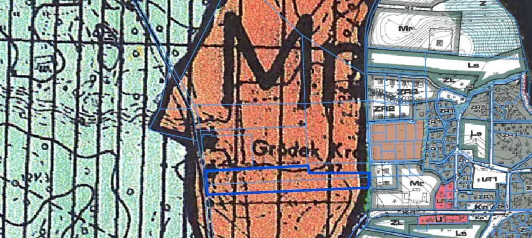 - Działka częściowo zagospodarowana, lekko nachylona, wielokąt