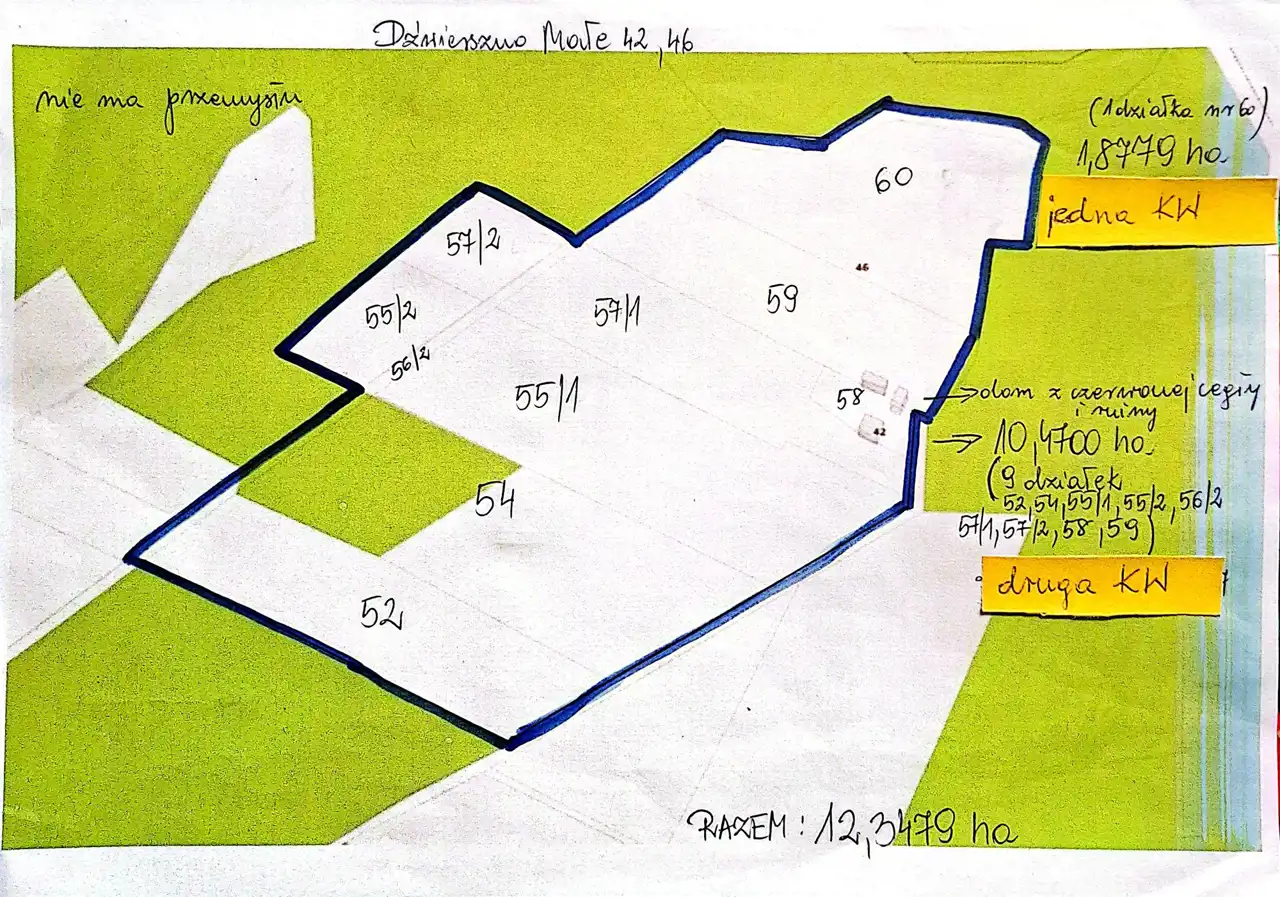 Na sprzedaż oferujemy malowniczo położoną działkę siedliskową o łącznej powierzchni 14 hektarów, zlokalizowaną w bardzo spokojnej, zielonej okolicy, w otoczeniu łąk i lasów. Nieruchomość stanowi idealne miejsce dla osób szukających ciszy, prywatności i bezpośredniego kontaktu z naturą.