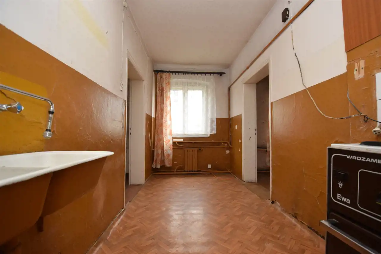 - dwa pomieszczenia przejściowe o charakterze gospodarczym o powierzchniach ok. 3,3 m2 i 8 m2