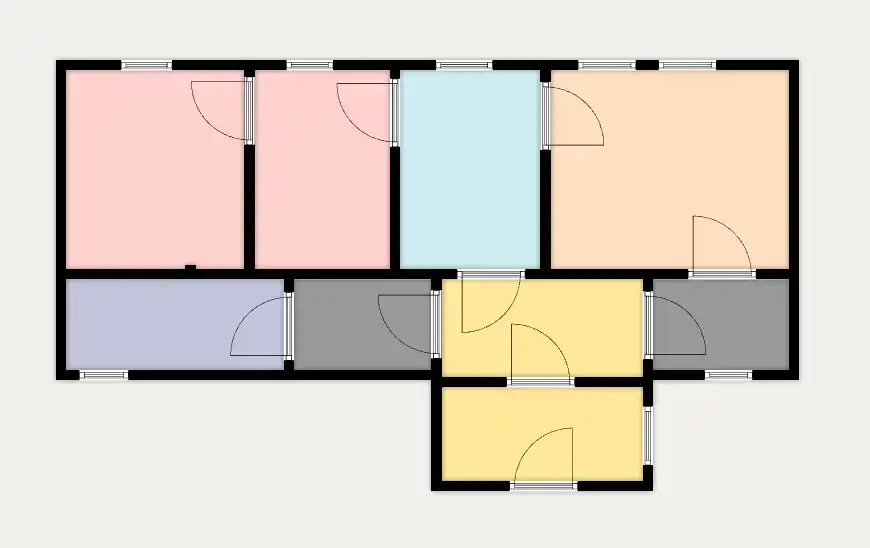 Układ daje wiele możliwości aranżacyjnych. Istnieje możliwość połączenia dwóch sypialni w jedną większą – pomiędzy nimi znajduje się ścianka działowa. Można również ograniczyć liczbę pomieszczeń przejściowych, a nawet zwiększyć ilość pokoi, dostosowując układ do indywidualnych potrzeb.