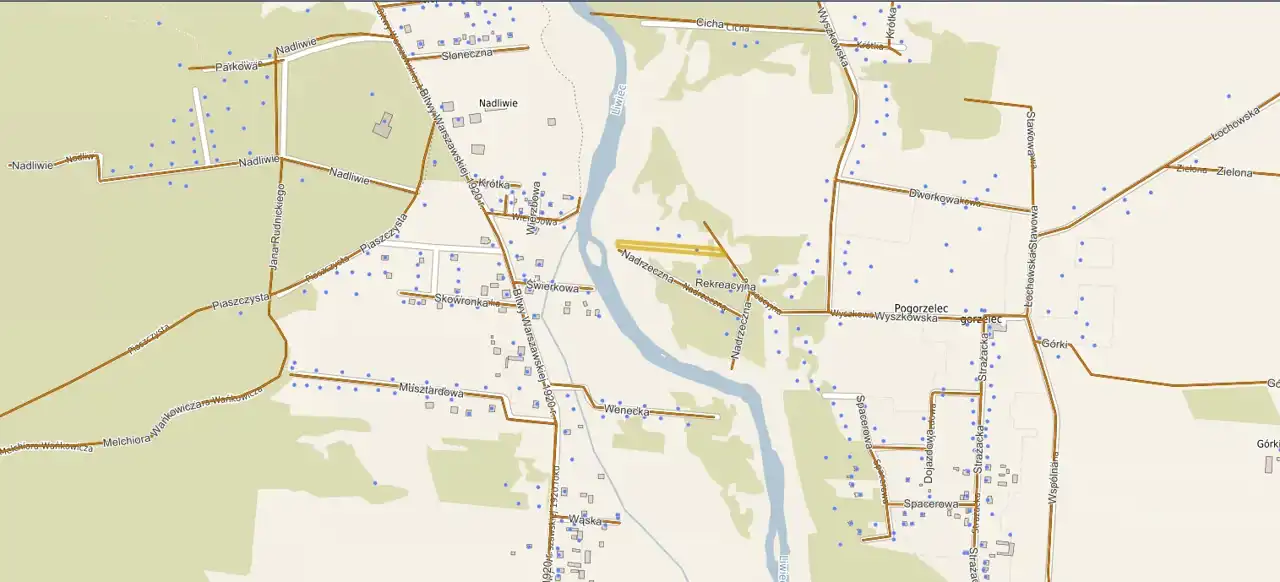 Energia elektryczna i wodociąg dostępne w drodze (ul. Rekreacyjna)