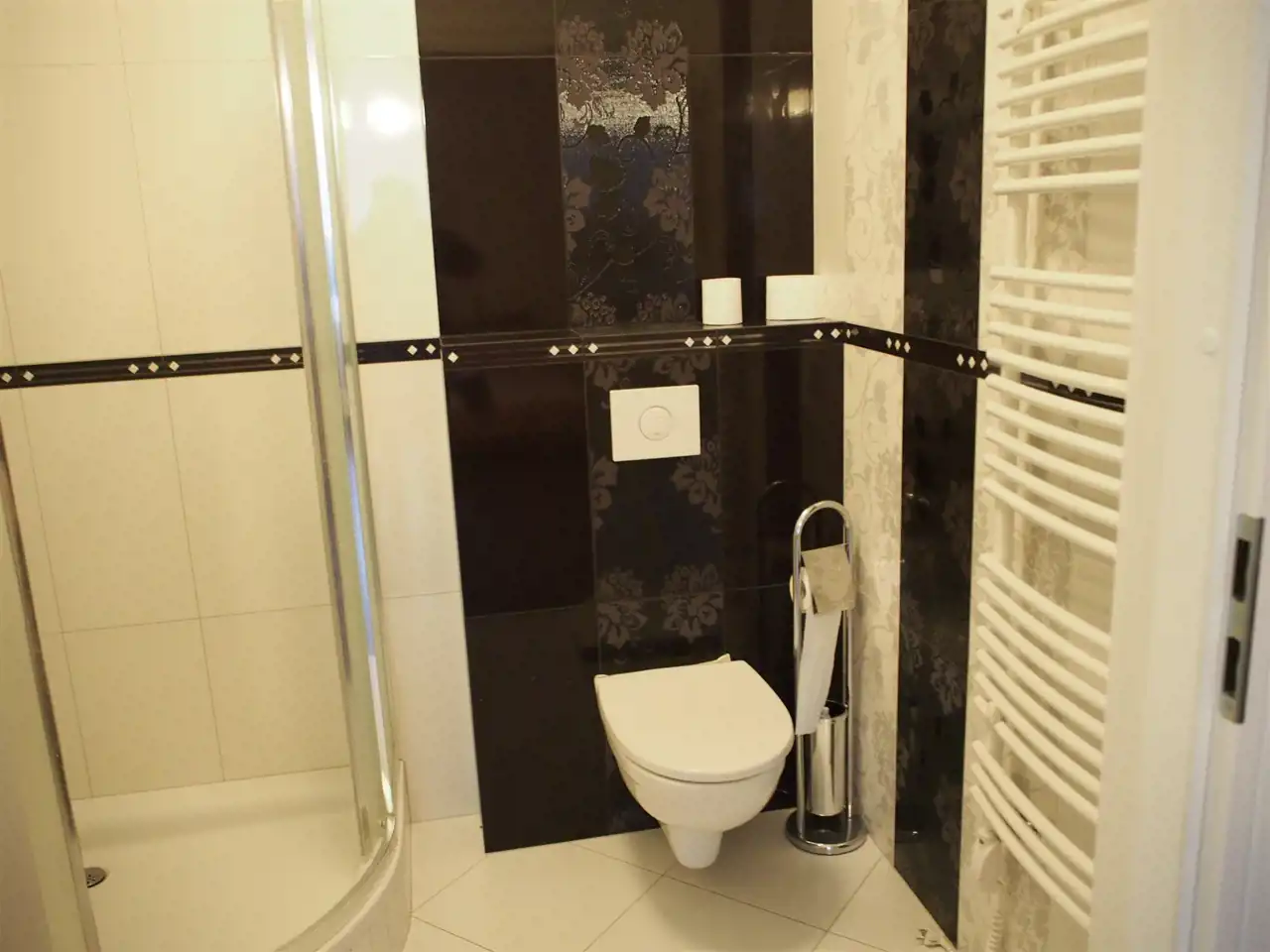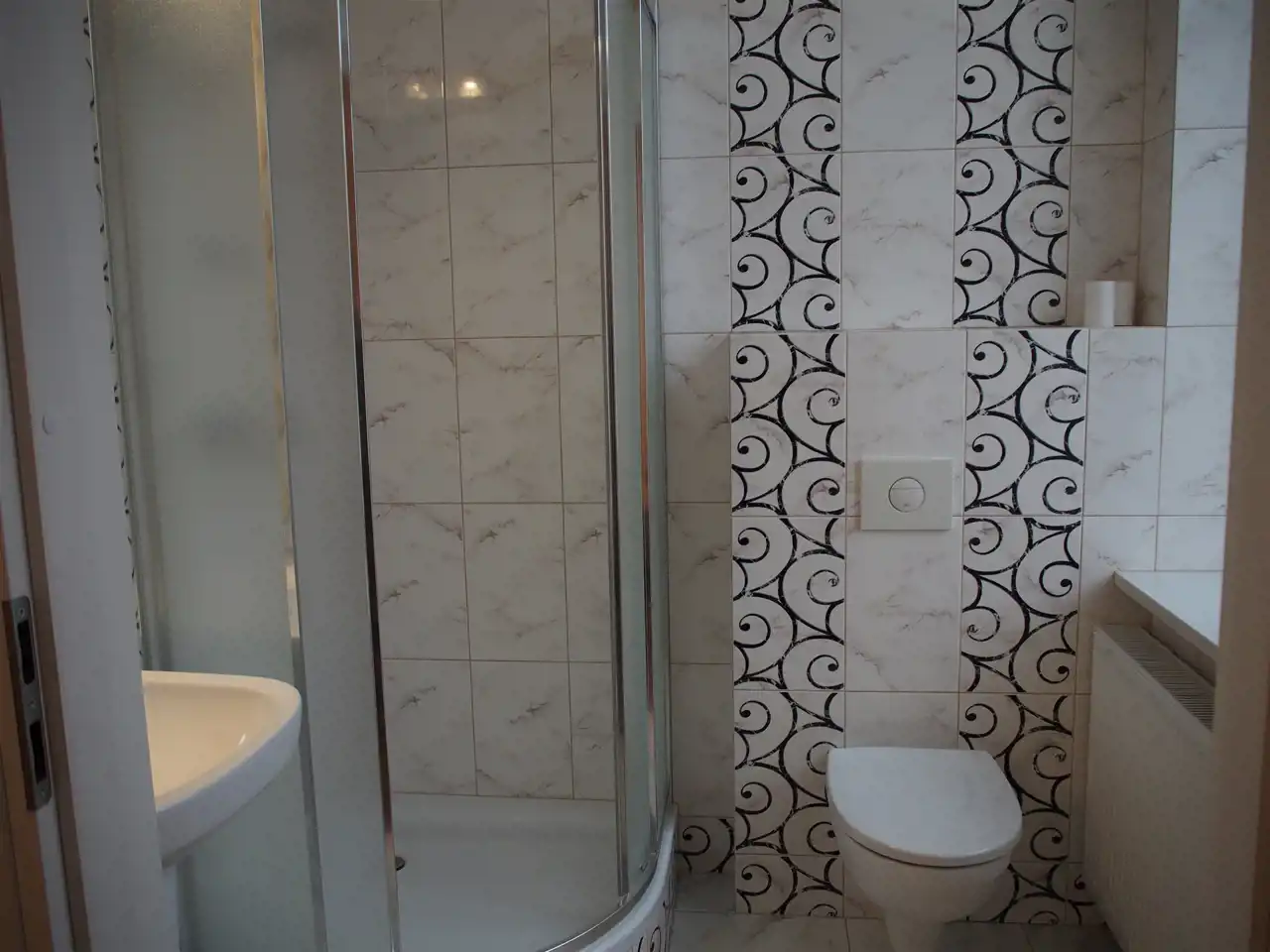 Wszystkie łazienki (10 sztuk) są wykończone w glazurze i terakocie z pełnym białym montażem. Zastosowane materiały wykończeniowe są zaliczane do droższych.