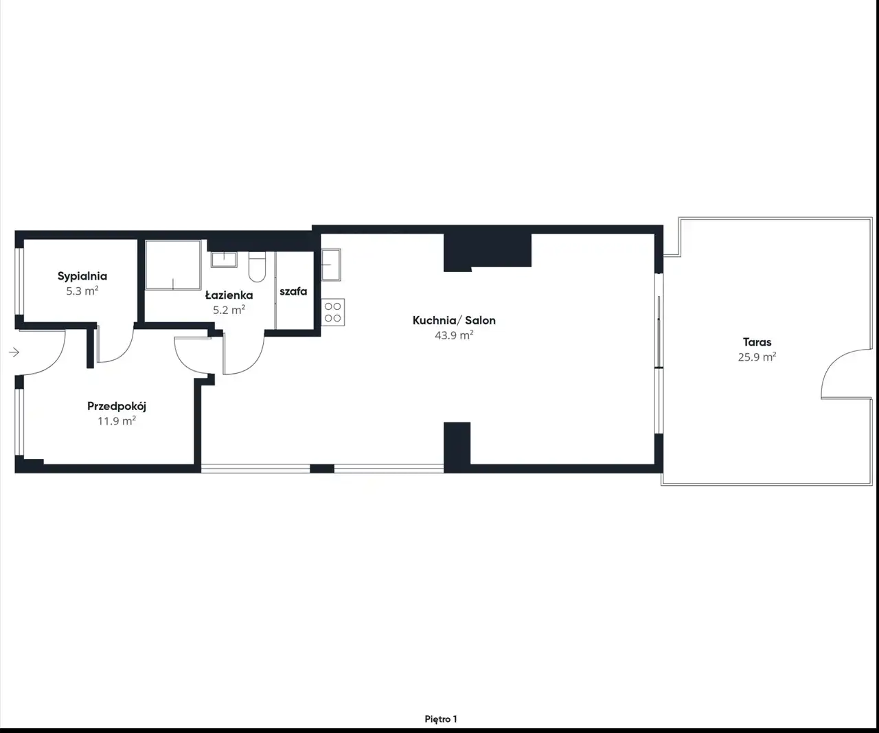 - przestronny salon z aneksem kuchennym i jadalnią z wyjściem na duży taras (idealny do relaksu i spotkań na świeżym powietrzu)