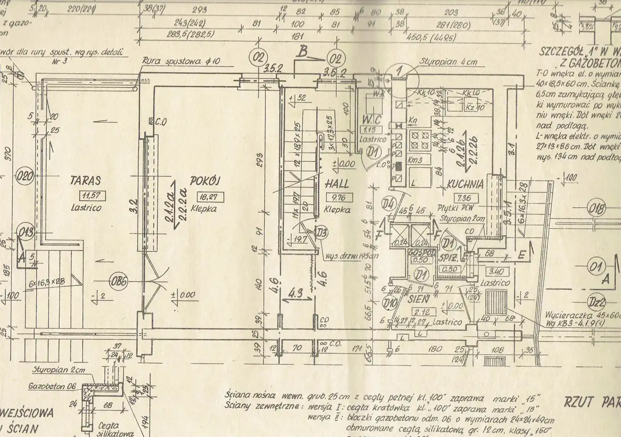 - Izolacja: Dom jest ocieplony styropianem 10 cm, a dach/stropodach dodatkowo docieplony styropianem.