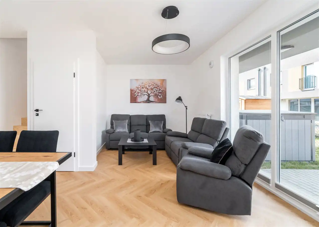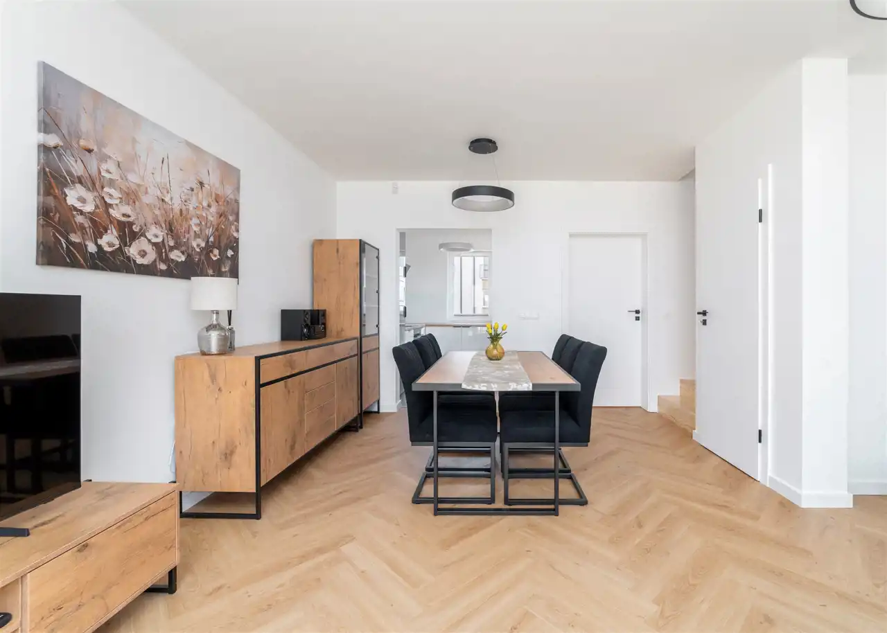 Przedstawiamy do wynajęcia nowy, 5-pokojowy, wykończony w wysokim standardzie dom szeregowy o powierzchni użytkowej 84,12 m2 usytuowany na ogrodzonym, kameralnym osiedlu "Zastawna Od Nova" na granicy Łodzi i Gadki Starej tuż przy kompleksie rekreacyjnym Stawy Stefańskiego.