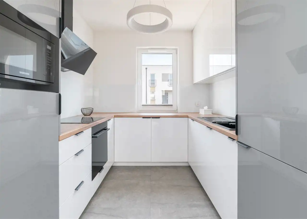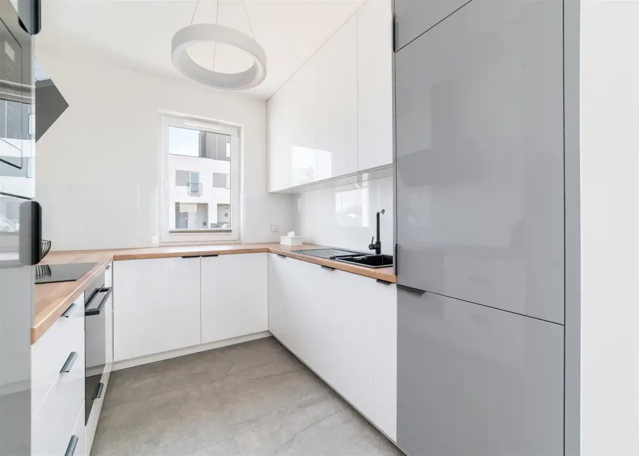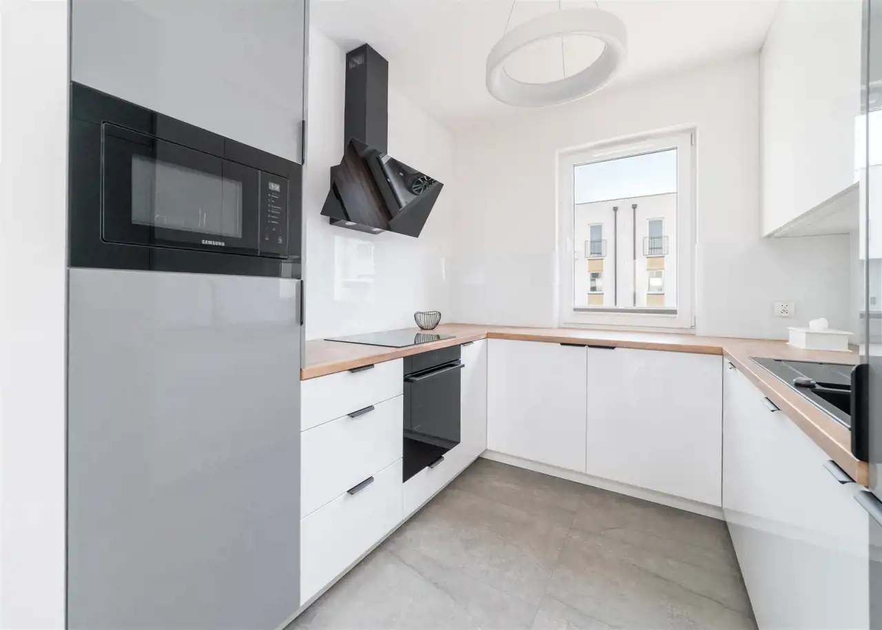 - aneks kuchenny wyposażony w płytę indukcyjną, okap, piekarnik, mikrofalę, zmywarkę oraz lodówkę z zamrażarką;