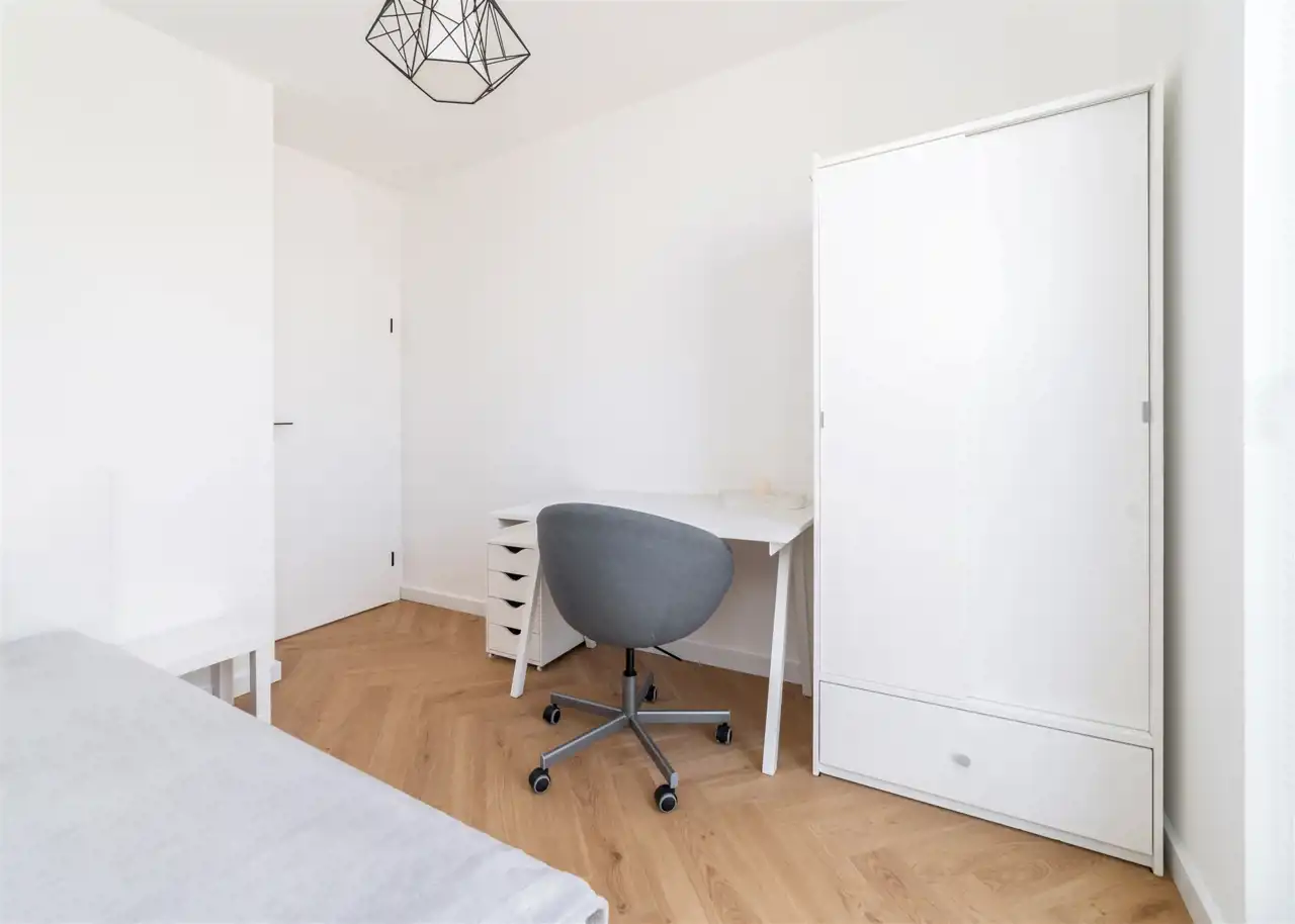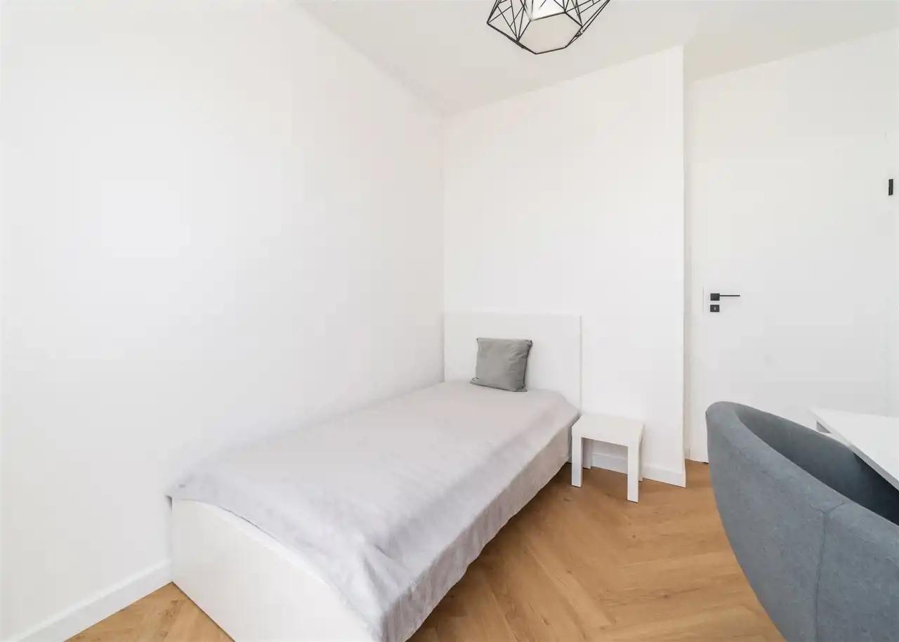 - pokój gościnny z pojedynczym łóżkiem, biurkiem i krzesłem oraz szafą;