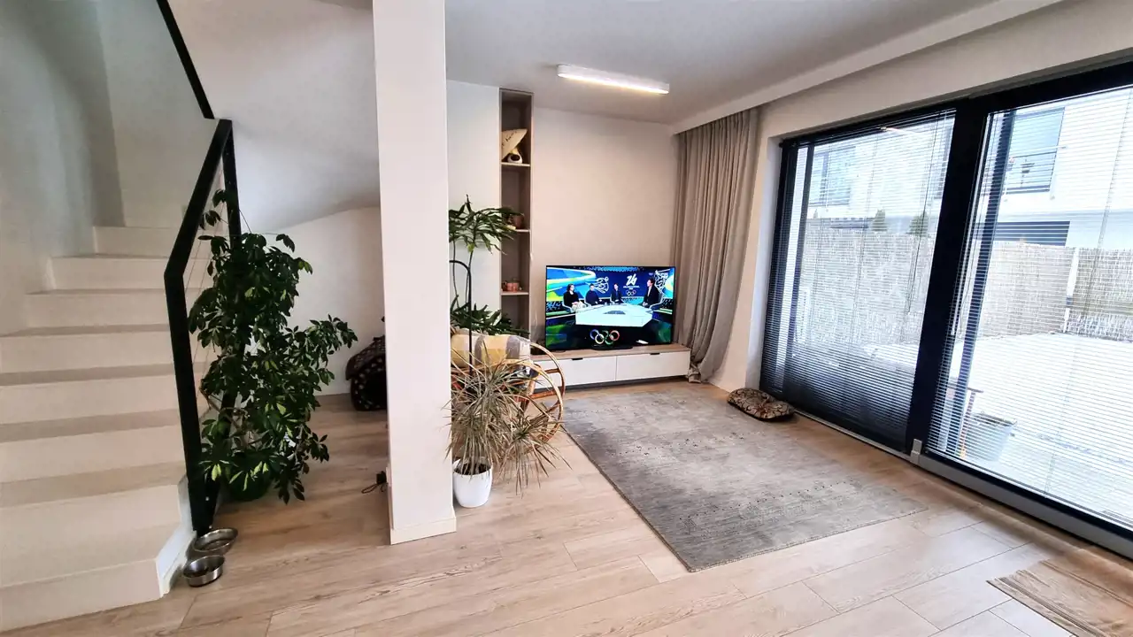 Estetyczny, 95 metrowy, DOM w zabudowie bliźniaczej, z WIATĄ garażową i ogrodzonym ogródkiem na osiedlu nowoczesnych domów,