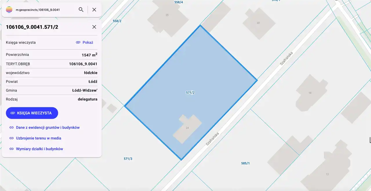 Prezentowana nieruchomość gruntowa, położona jest we wschodniej części Miasta Łodzi, przy ul. Szafrańskiej 24, to obszar dzielnicy Widzew.