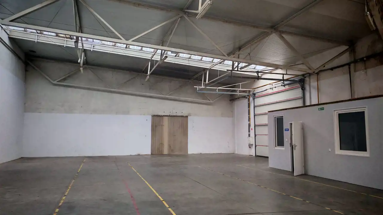 Do wynajęcia hala magazynowa usytuowana na parterze budynku o pow. 384 m2 i pomieszczenie socjalne z toaletą. Hala z przeznaczeniem na magazyn lub funkcję handlowo usługową. Hala może być ogrzewana. Dostęp do hali z poziomu zero przez bramę o wymiarach wys.5,25 m szer.4,25 m . Posadzka hali bezpyłowa. Wysokość hali 4,25 m - 5,18 m. Teren nieruchomości ogrodzony, ochrona, monitoring, możliwy dojazd samochodami ciężarowymi oraz TIR. Dostępny jest ogrodzony parking.