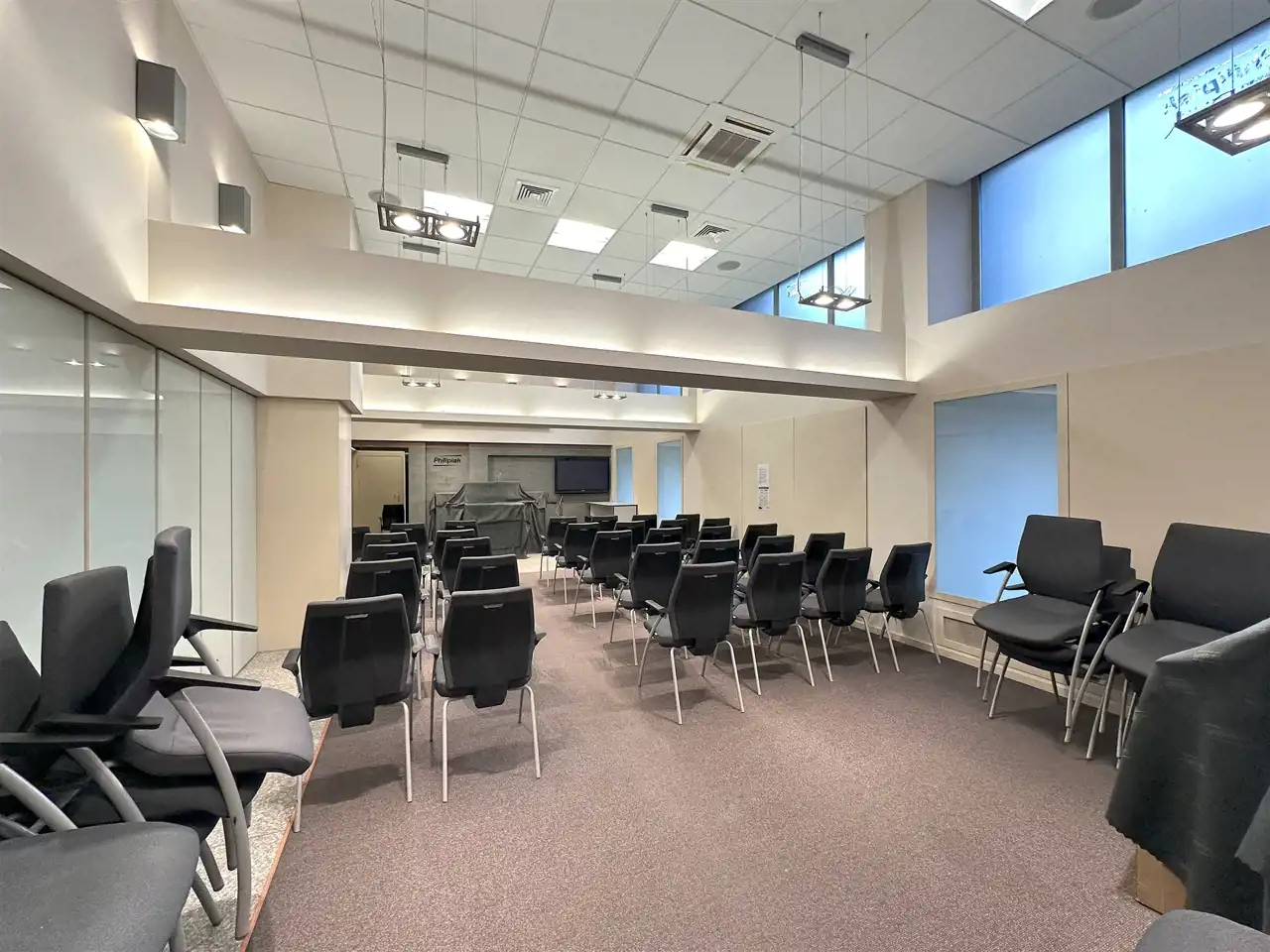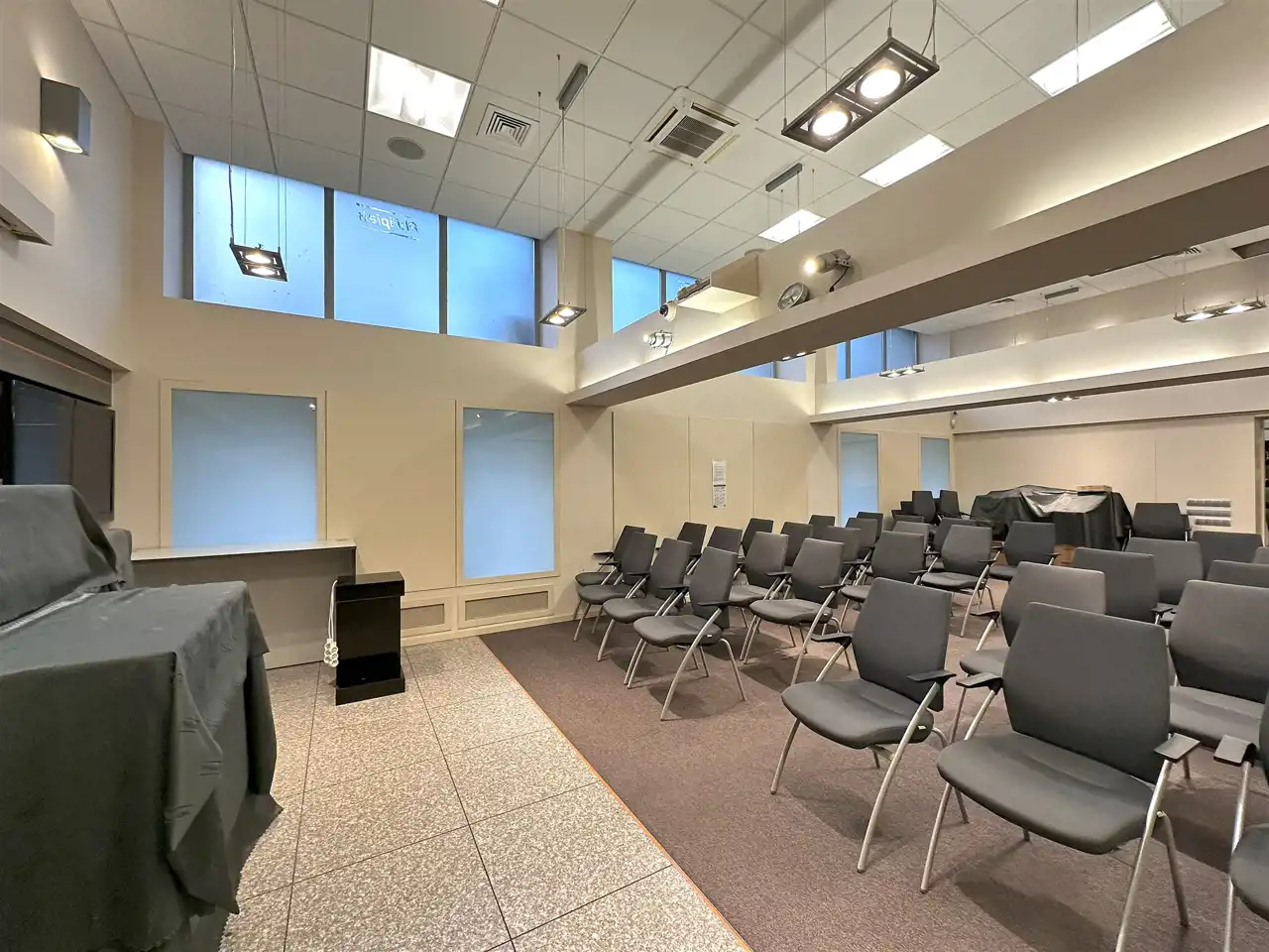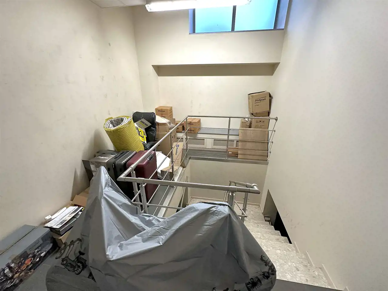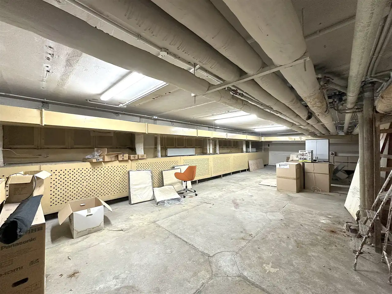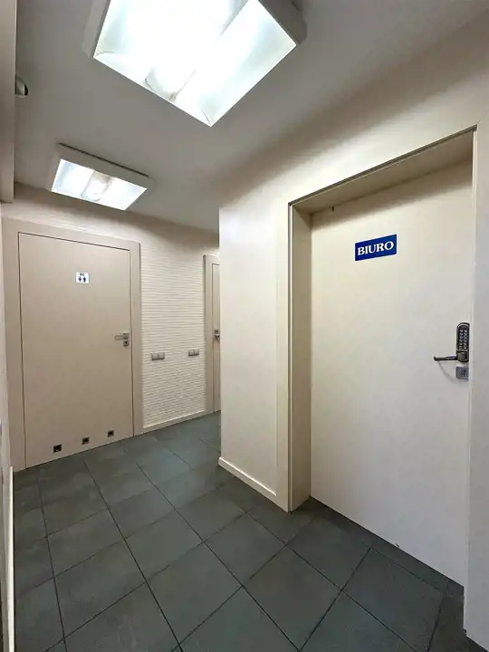 Pomieszczenie magazynowo-gospodarcze z oknami - 99,87 m2 (wysokość 2,2 m) z wejściem od powierzchni usługowej oraz z dodatkowym indywidualnym wejściem z parkingu.