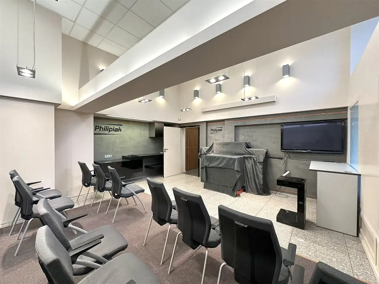 Parter lokalu to 191,77 m2, składa się z sali sprzedaży, sali konferencyjnej, zaplecza biurowo-socjalnego (pokój biurowy, dwie toalety, pomieszczenie socjalne, korytarz) - wysokość 5 m