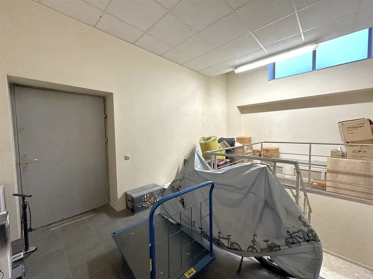 Pomieszczenie magazynowo-gospodarcze z oknami - 99,87 m2 (wysokość 2,2 m) z wejściem od powierzchni usługowej oraz z dodatkowym indywidualnym wejściem z parkingu.
