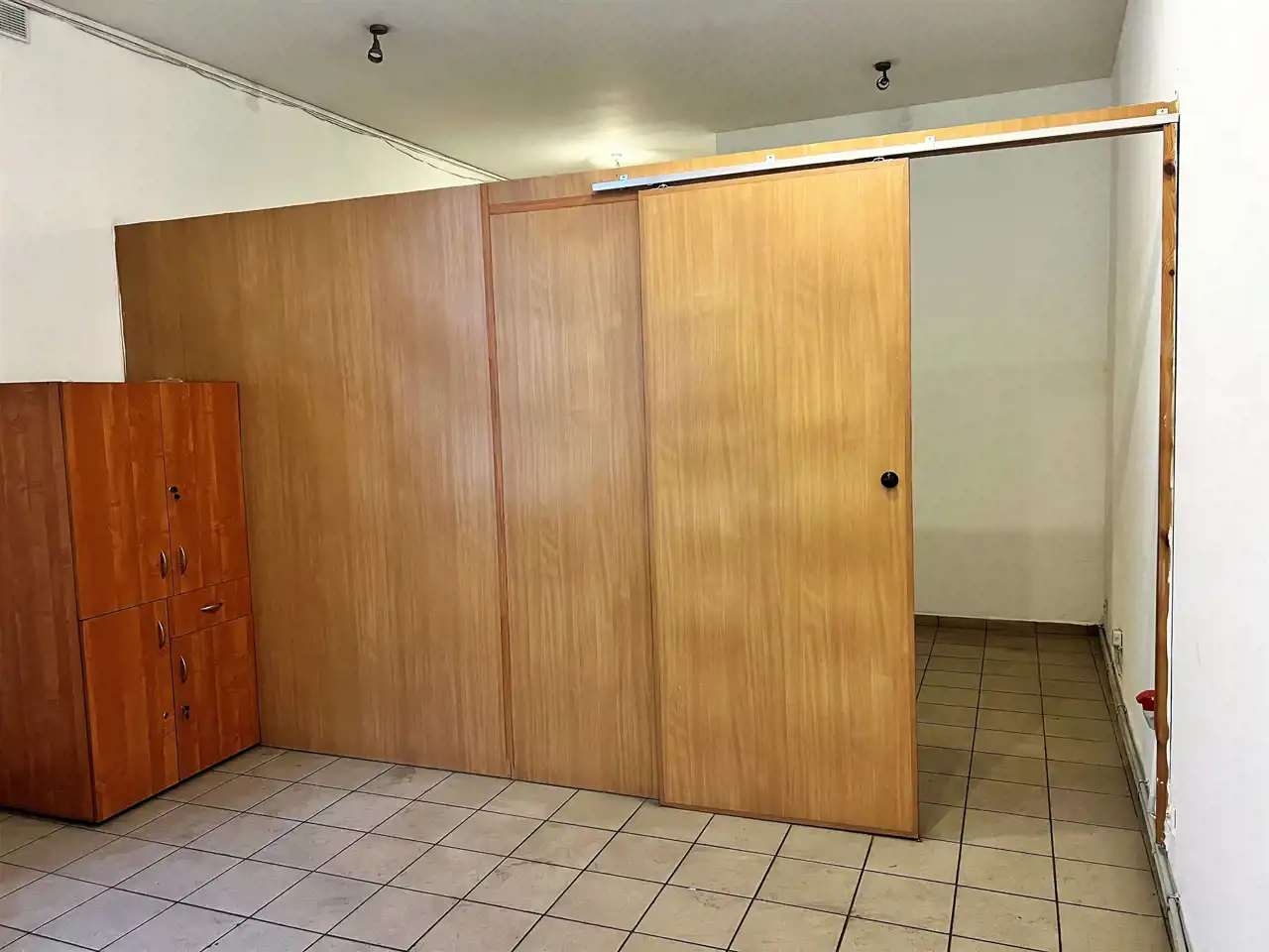 - POMIESZCZENIE II - ZAPLECZE(MAGAZYN) - ok. 30 m, podłoga terakota, ściany gładzie, okno od strony podwórka - wejście do tego pomieszczenia z bramy, w środku pomieszczenia ścianka z płyt do ewentualnego usunięcia,