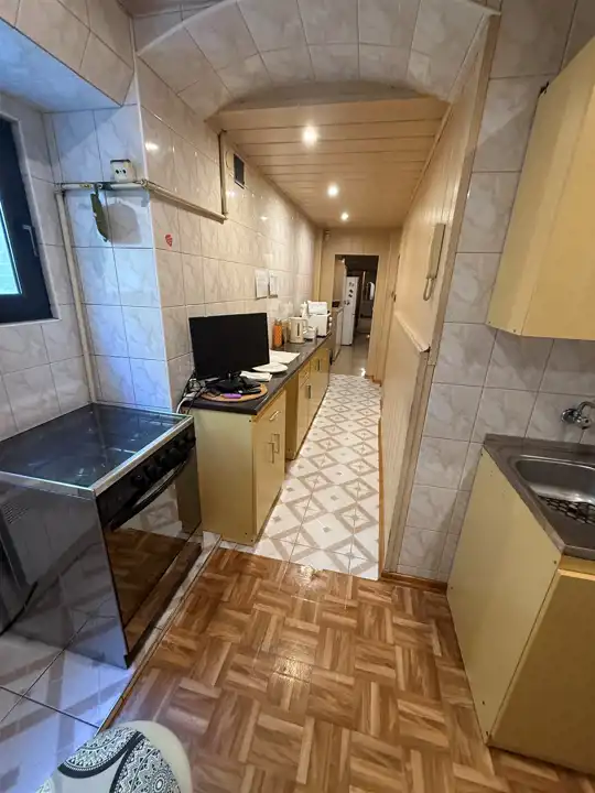 - kuchnia 9,80m2 na ścianach panele ścienne n podłodze terakota, grzejnik konwektor 1kw