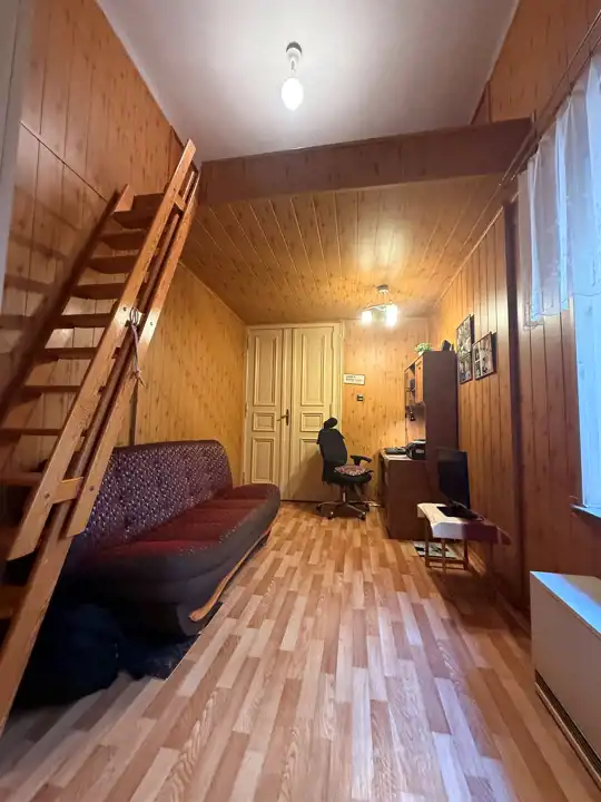 - I sypialnia o pow. 12,6 m2, na podłodze parkiet , ściany panele , ogrzewanie piec akumulacyjny z dynamicznym rozładowaniem