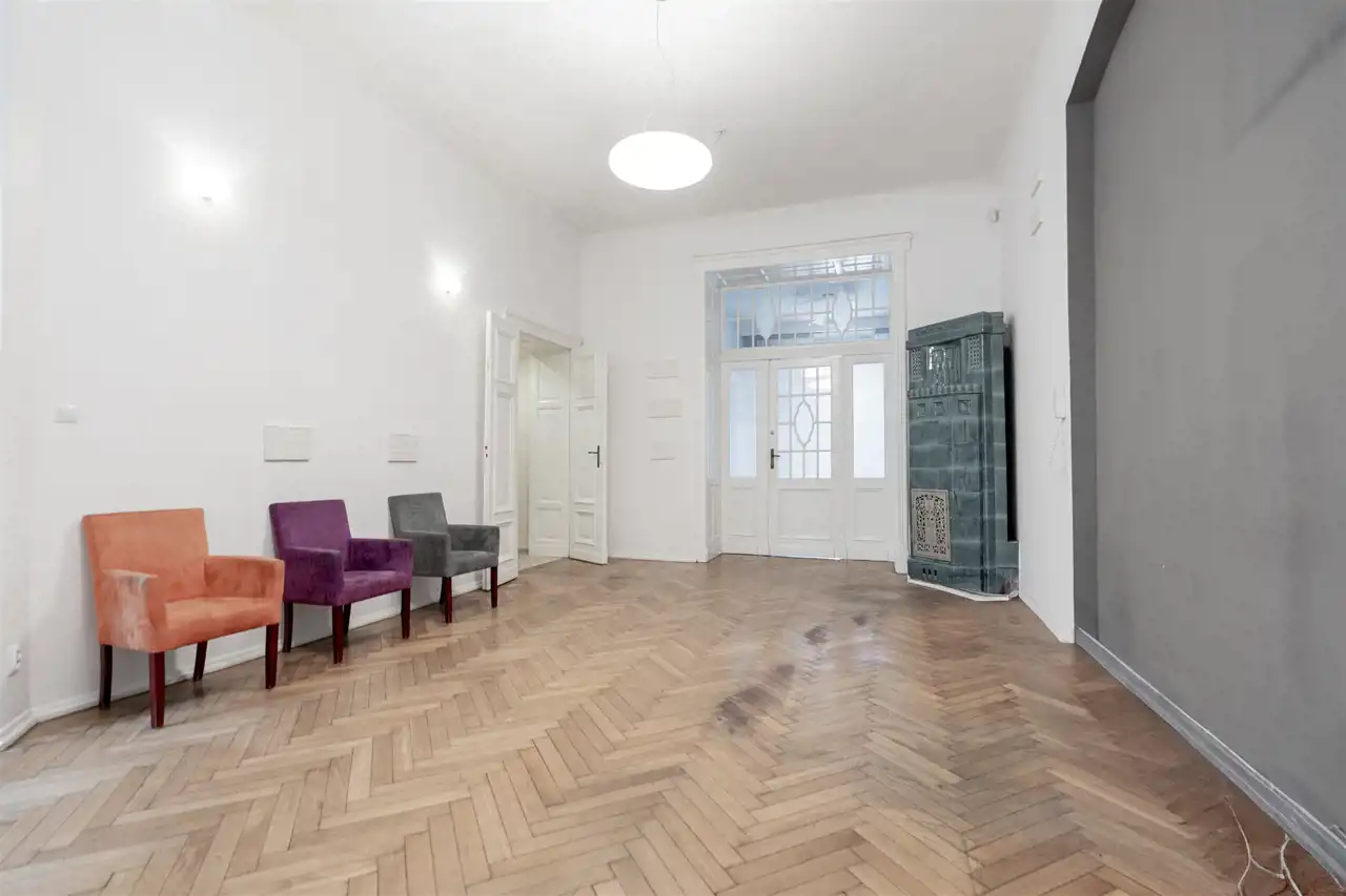 Wysokość lokali to 4,8 m dzięki czemu są one bardzo przestrzenne i reprezentacyjne. Wykończone w dobrym standardzie. Na podłodze parkiet dębowy, ściany pomalowane na neutralne kolory. Dodatkowo duży lokal posiada dwa zabytkowe, ozdobne piece kaflowe. Lokale są dobrze doświetlone dzięki dużym oknom, z których rozpościera się widok na Teatr Wielki.