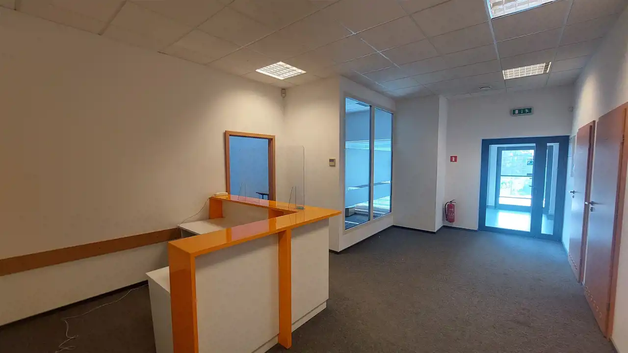 Do wynajęcia powierzchnia biurowa w nowoczesnym budynku biurowym z parkingiem. Powierzchnia składa się z 6 pokoi, sali open space, sali konferencynej, recepcji, aneksu kuchennego, serwerowni oraz dwóch toalet w tym jedna przystosowana dla osób niepełnosprawnych. Powierzchnia znajduje się na II piętrze budynku. Dostęp przez dwa niezależne wejścia, dwie klatki schodowe w tym jedna z windą (kontrola dostępu). Cała powierzchnia jest klimatyzowana i posiada wentylację mechaniczną. Budynek przystosowany jest dla osób niepełnosprawnych. Przed budynkiem znajduje się parking. Dostępne jest 10 miejsc parkingowych płatnych. Teren ogrodzony, chroniony całodobowo.