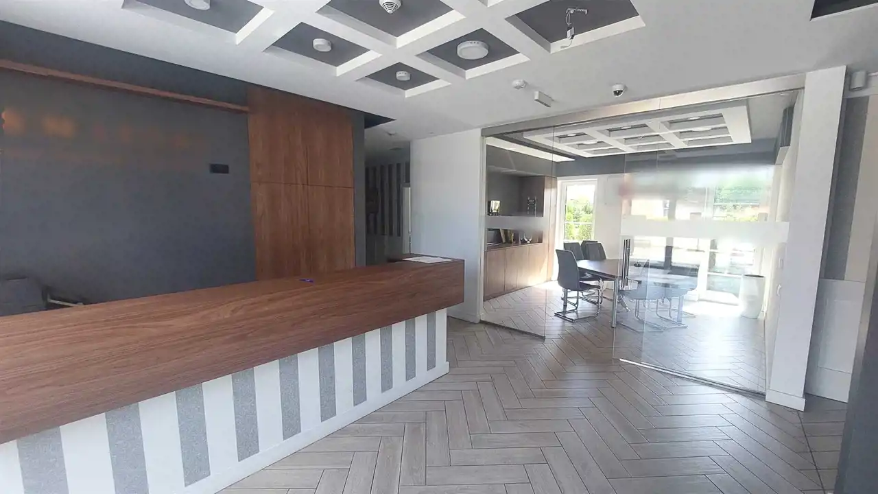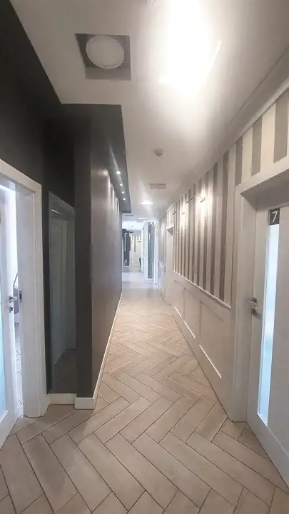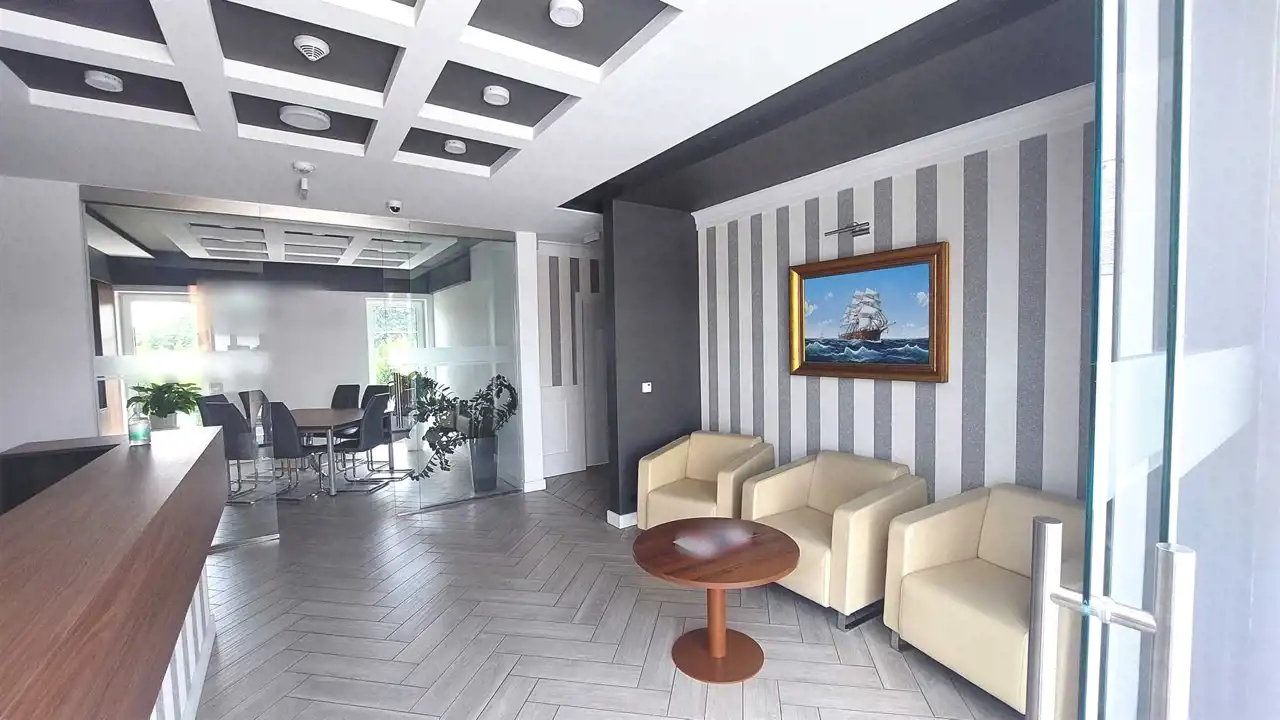 Do wynajęcia lokal biurowy lub usługowy w wolnostojącym budynku parterowym z dostępem do ogrodu. Lokal o wysokim standardzie wykończenia składa się z 9 pokoi, gabinetów, recepcji, sali konferencyjnej, aneksu kuchennego oraz dwóch łazienek z wc. Do dyspozycji najemcy jest także taras z widokiem na ogród. Przed lokalem znajdują się miejsca parkingowe. Teren nieruchomości jest ogrodzony, zamykany i chroniony. Lokal może być przeznaczony na siedzibę firmy, gabinety lekarskie, gabinety odnowy biologicznej, centrum spa. Istnieje możliwość wynajęcia mniejszej liczby pokoi.