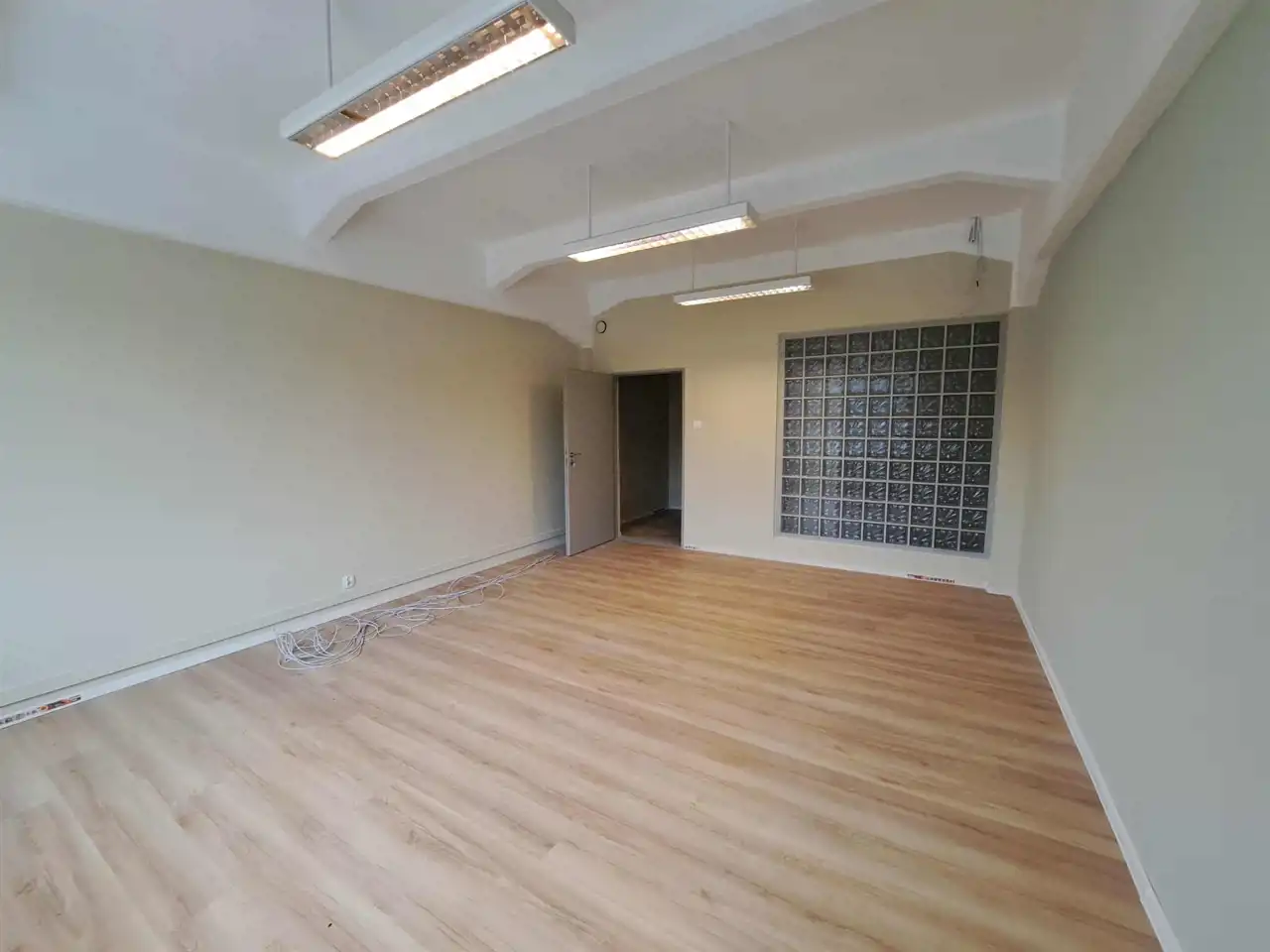 Lokal jest na 1p. Na połodze panele podłogowe a na ścianach gładź gipsowa. Ogrzewanie miejskie.