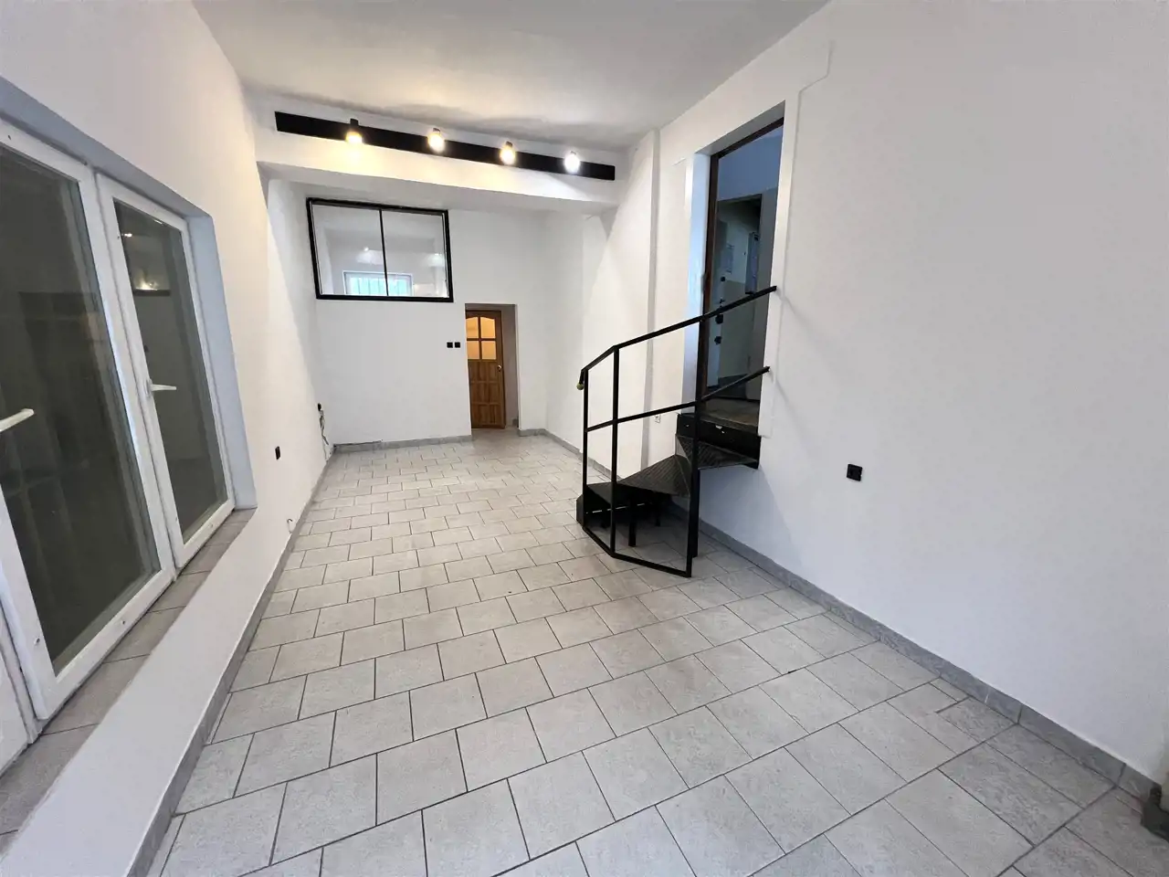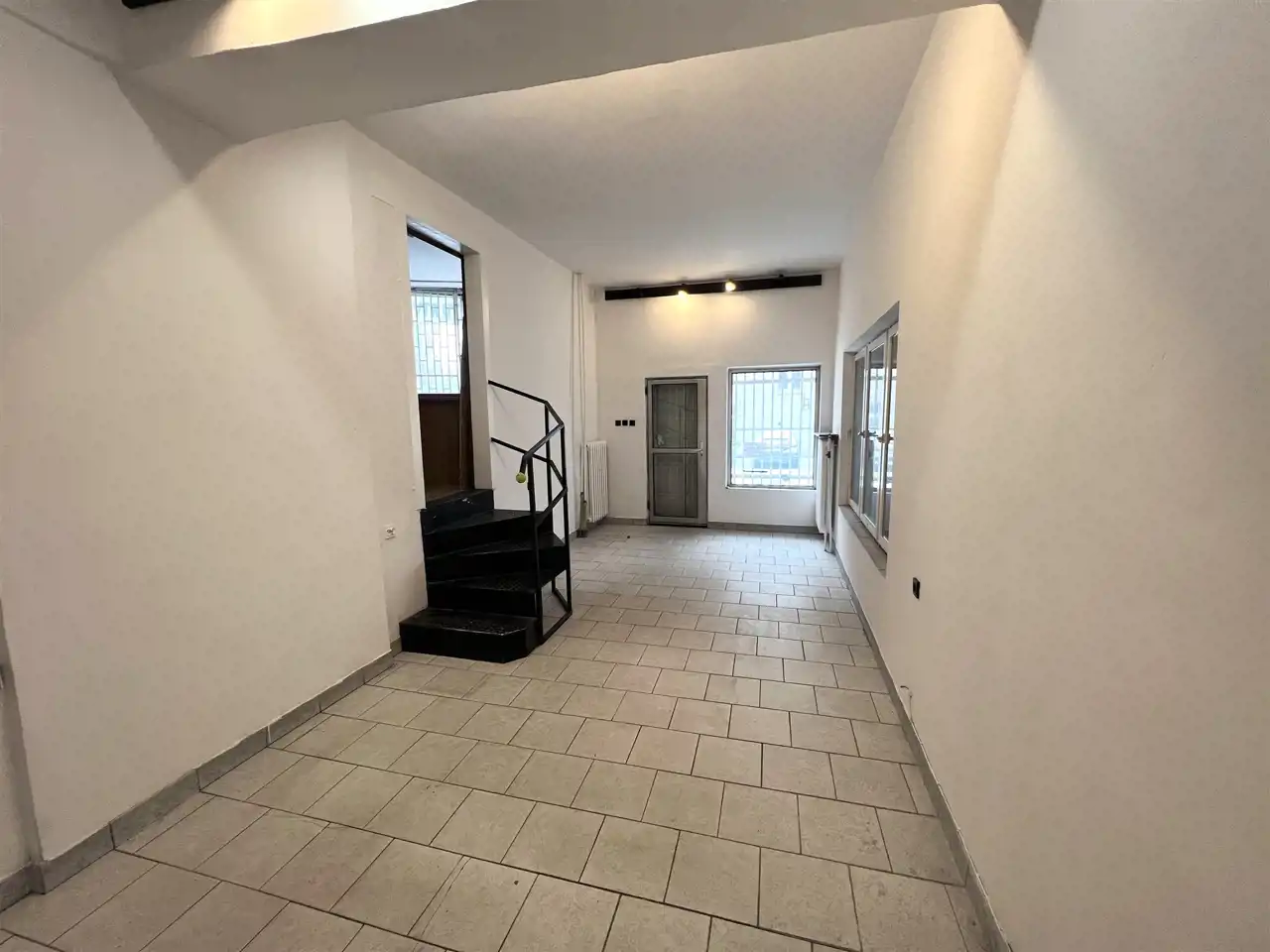 - POMIESZCZENIE I - SALA GŁÓWNA (SALA SPRZEDAŻY) - 22,43 m2, podłoga terakota, ściany tynk tradycyjny, świeżo pomalowane, duże okno frontowe przy wejściu, w tylnej części nieduży magazyn, obok wc z umywalka, w środkowej części sali metalowe schody kręcone z wejściem do pomieszczeń biurowych ok. 1m powyżej,