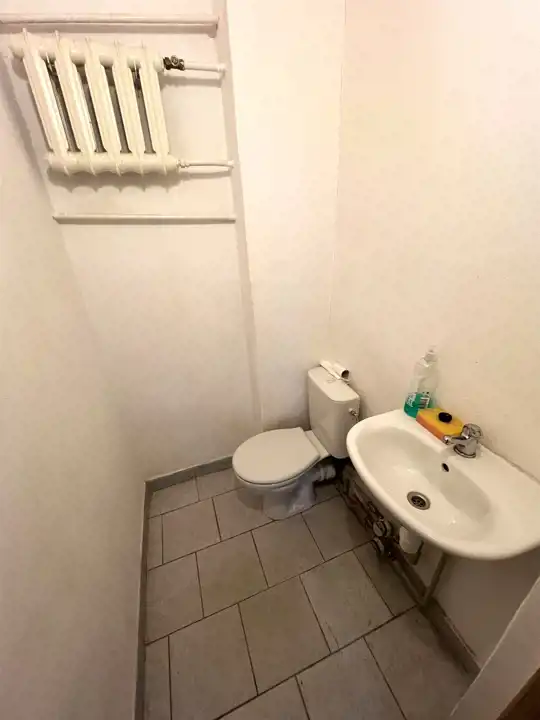 - WC: na zapleczu sali głównej, obok magazynu, 2,9 m2, sedes, umywalka,