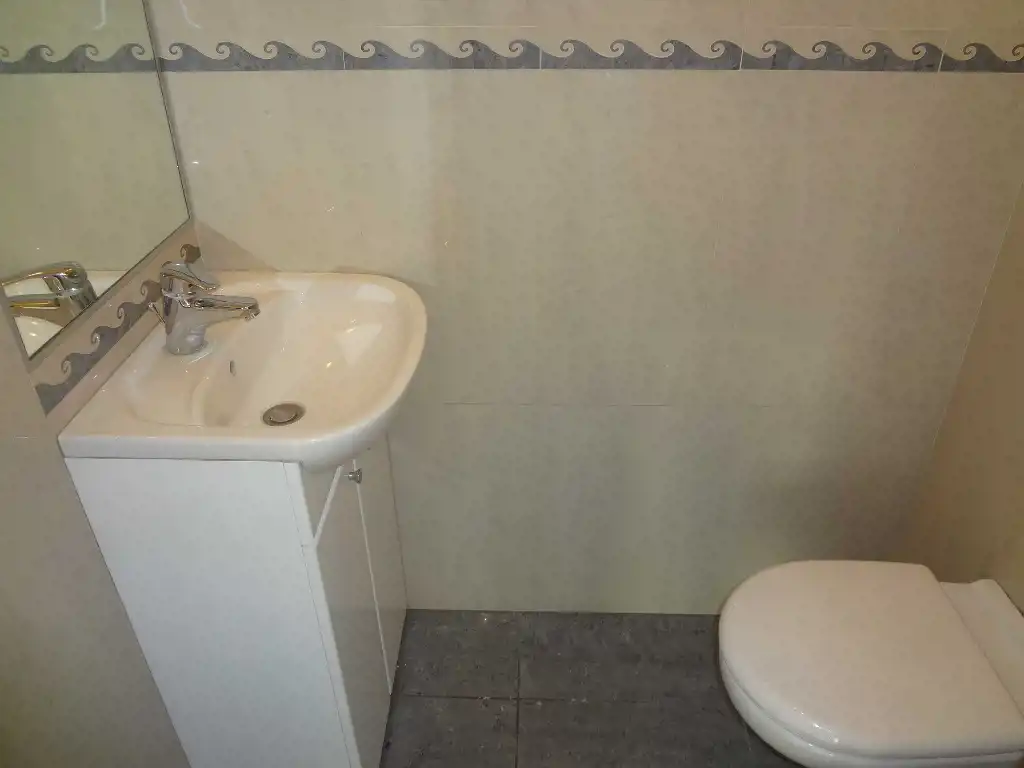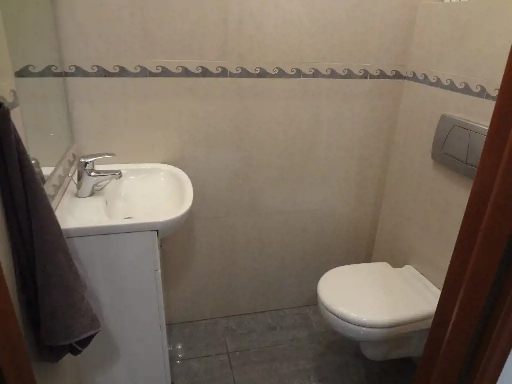 - WC OK. 2 m, umywalka z szafką, sedes, podłoga gres szkliwiony, ściany gladzie i glazura