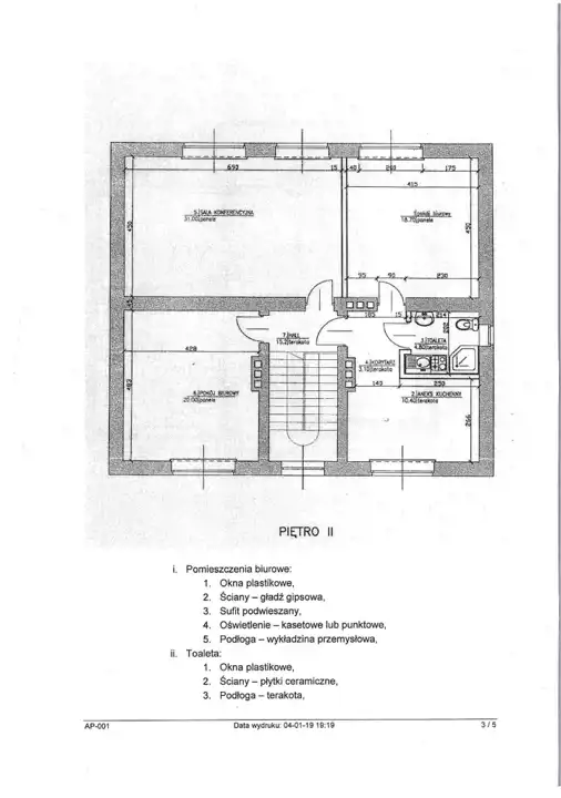 II PIĘTRO - 103,20 m : sala konferencyjna, 2 pokoje, pomieszczenie socjalne - KUCHNIA, WC z prysznicem,