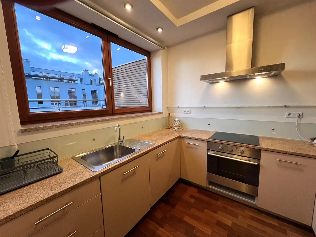 - ANEKS KUCHENNY: 6,7 m², kompletnie wyposażona i umeblowana, zlew chromoniklowy, płyta ceramiczna SCHOTT, piekarnik elektryczny ELECTROLUX, pochłaniacz MASTERCOOK, zmywarka CANDY, lodówka WHIRPOOL,