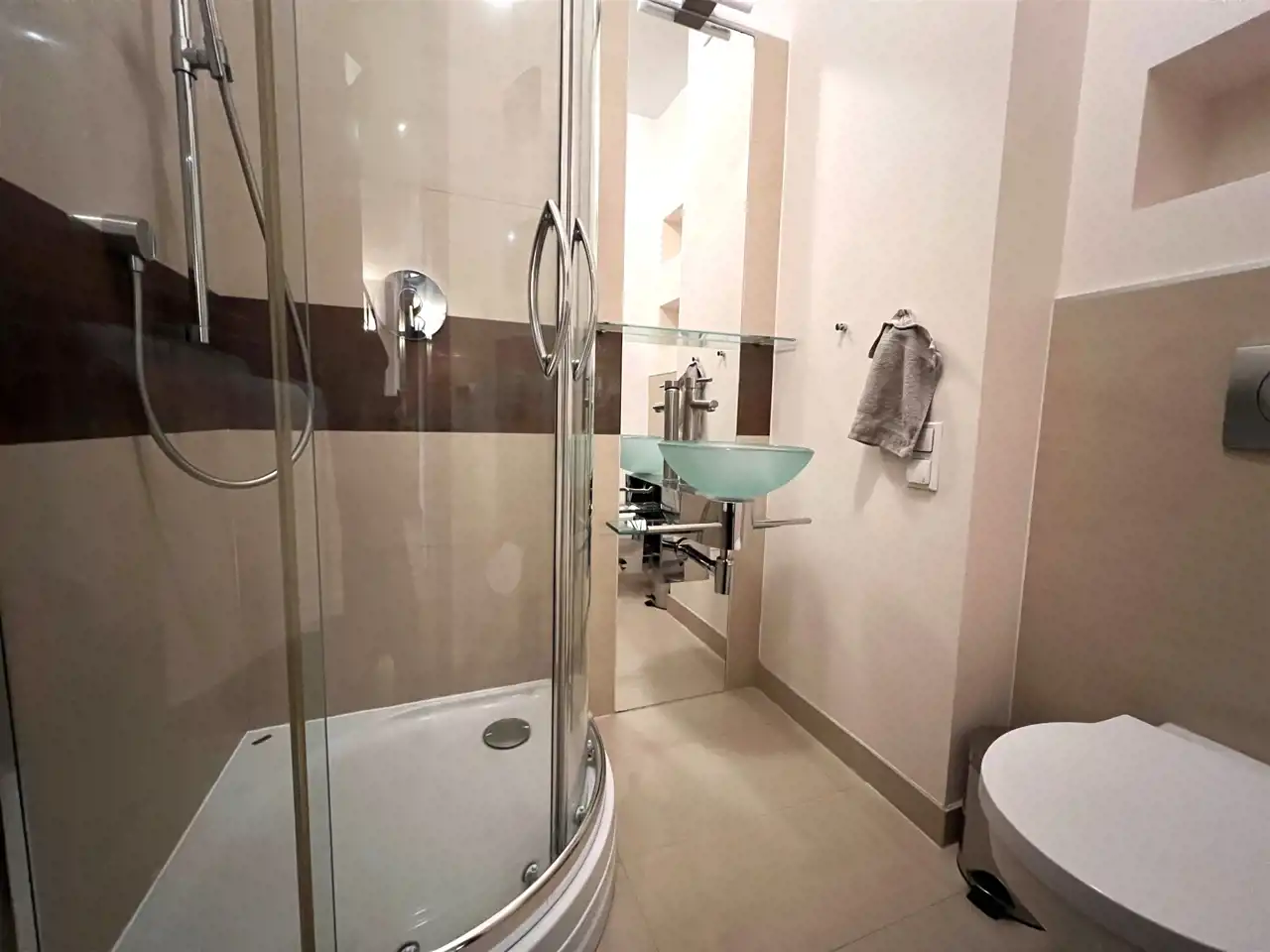 - STANDARD WYKOŃCZEŃ: w pokojach na podłogach parkiet egzotyczny, w łazienkach i w aneksie kuchennym terakota i glazura, ściany gładzie gipsowe pomalowane,