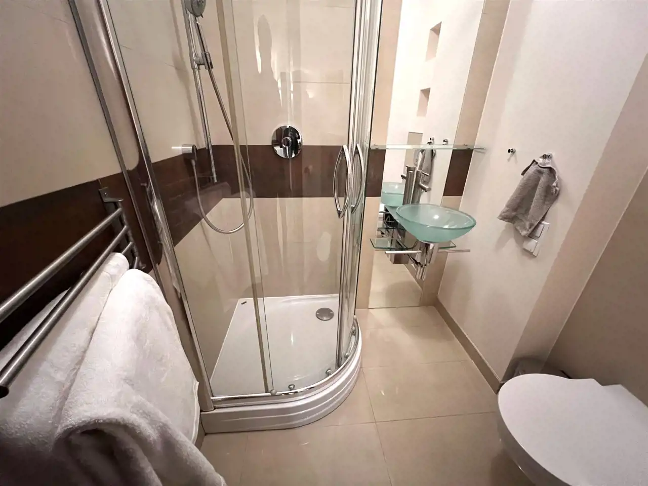 - ŁAZIENKA: 2,5 m², z kabiną prysznicową, sedes, umywalka,