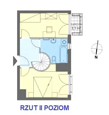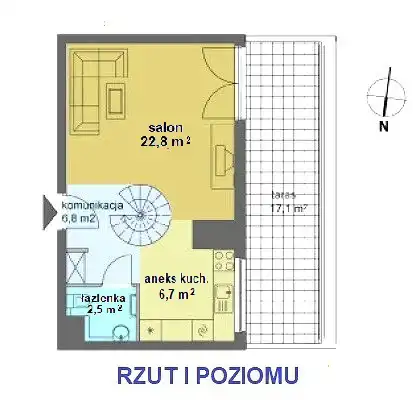- HOL: ok. 6,30 m², wejście na drugi poziom z korytarza z ostatniej kondygnacji budynku z windą,