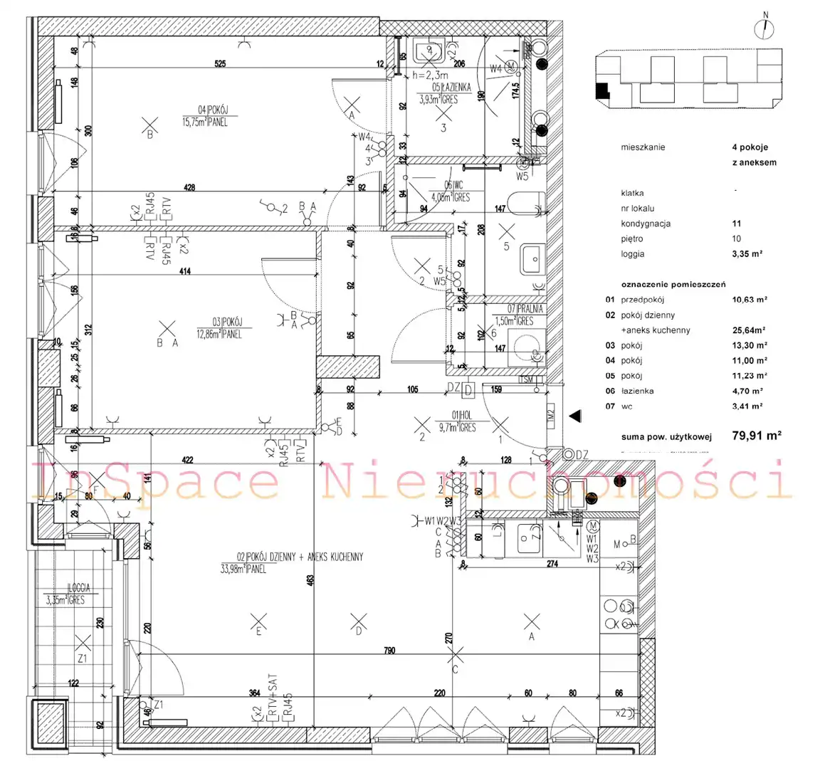- Charakterystyka mieszkania 79.91 m2, 4 pokoje