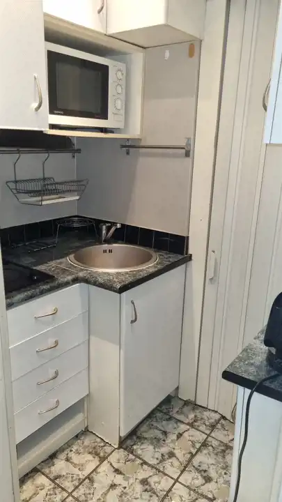 - ANEKS KUCHENNY: ściany: częściowo gładzie gipsowe, częściowo glazura; podłoga: terakota; szafki kuchenne stojące i wiszące; zlewozmywak + bateria, płyta indukcyjna 2 palnikowa, kuchenka mikrofalowa, czajnik elektryczny