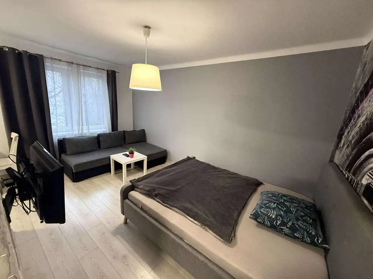 Mieszkanie całkowicie wyposażone, składa się z pokoju o pow 16m2 oraz aneksu kuchennego , łazienki i przedpokoju.