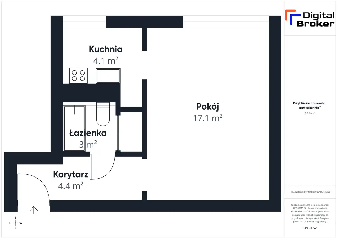 - Charakterystyka mieszkania 28.58 m2, 1 pokój