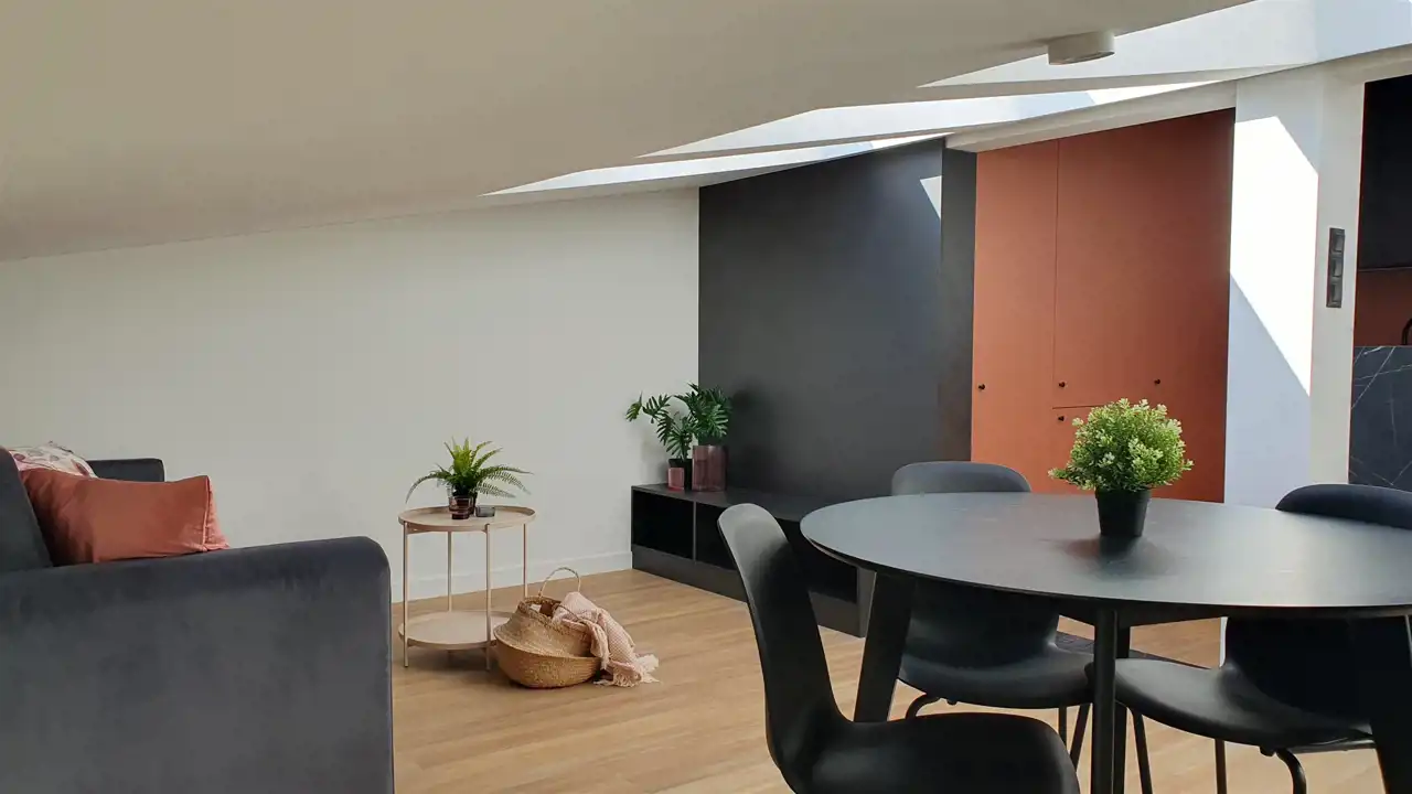 Klimatyzacja zapewnia komfortową temperaturę mieszkania przez cały rok. Dodatkowo izolacja dachu wykonana została z celulozy, dzięki czemu mieszkanie, mimo lokalizacji na poddaszu, nie nagrzewa się zbytnio latem i utrzymuje ciepło zimą.
