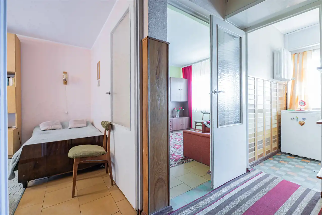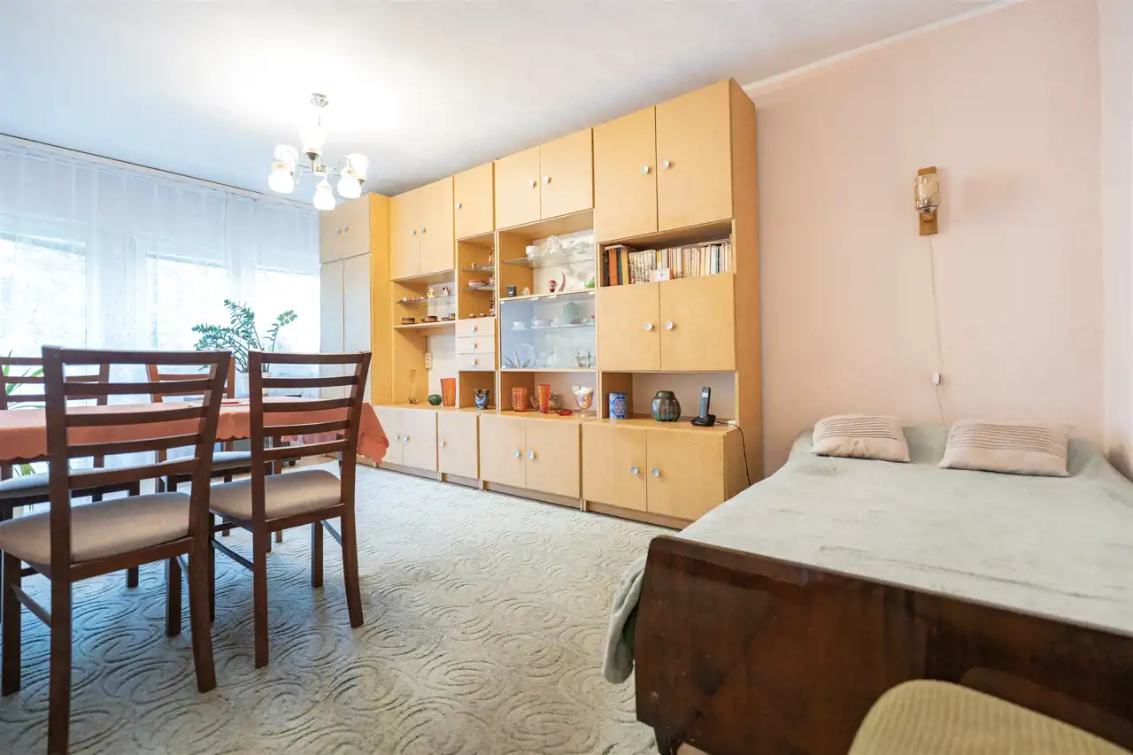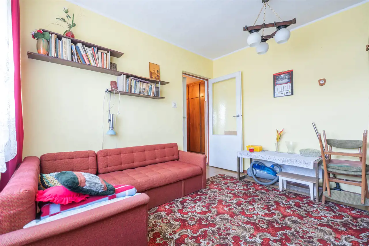 Składa się z dwóch oddzielnych pokoi, oddzielnej kuchni, łazienki razem z WC oraz przedpokoju. Całość stanowi ponad 45 m2, do tego dodatkowo dwie komórki lokatorskie o pow. Ok. 2 m2. Salon z wystawą zachodnią, zaś kuchnia i drugi pokój - wystawa wschodnia. Mieszkanie posiada miejsce na bardzo dużą szafę w przedpokoju. Lokal do remontu, bądź do własnego umeblowania.