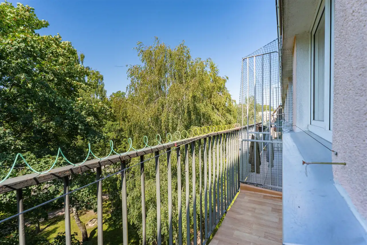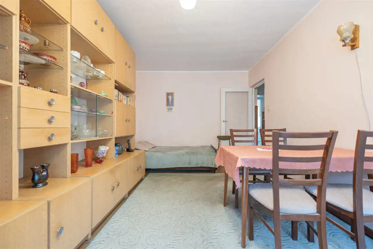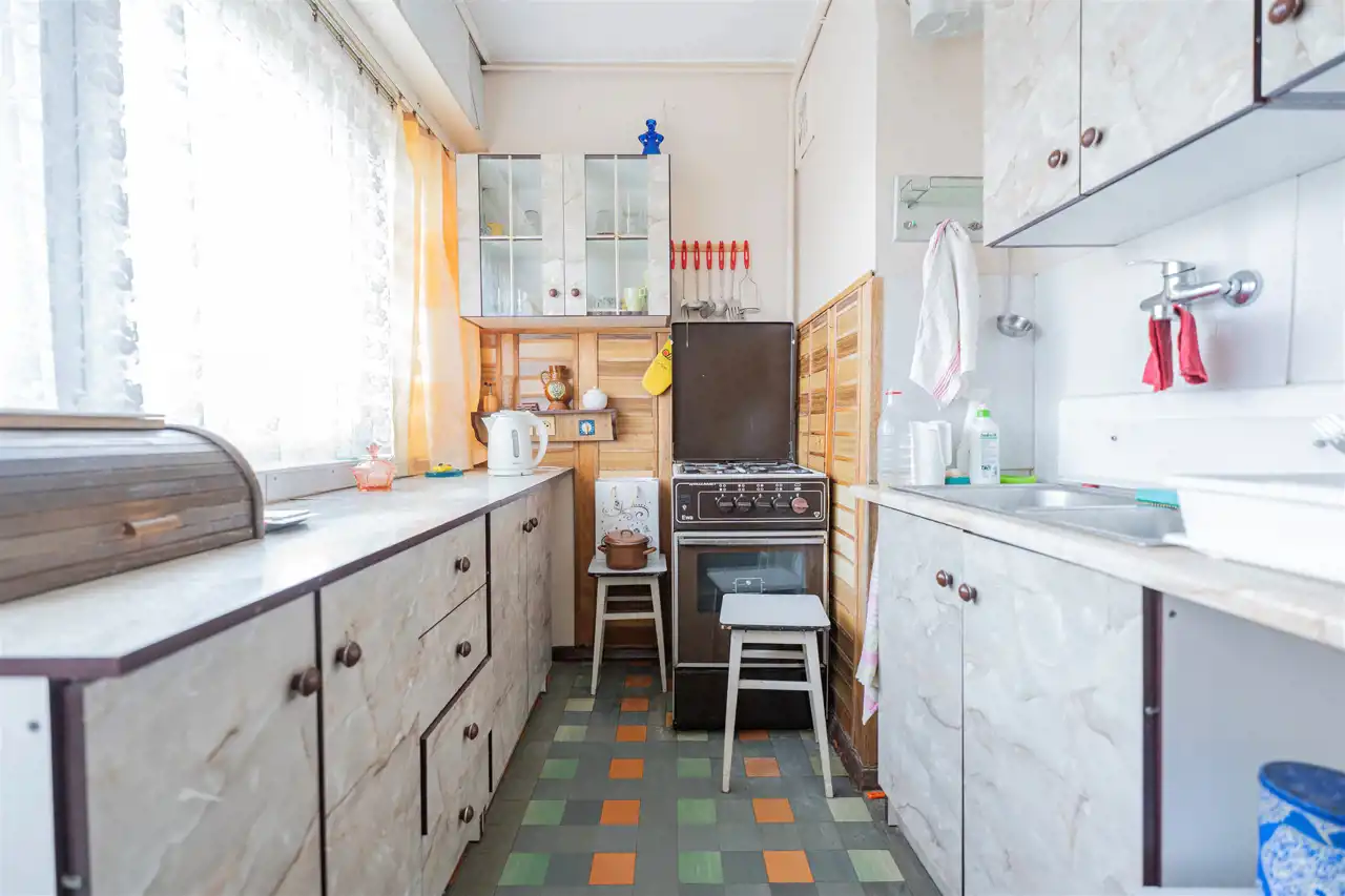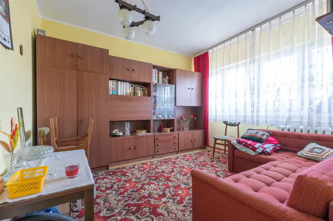 Składa się z dwóch oddzielnych pokoi, oddzielnej kuchni, łazienki razem z WC oraz przedpokoju. Całość stanowi ponad 45 m2, do tego dodatkowo dwie komórki lokatorskie o pow. Ok. 2 m2. Salon z wystawą zachodnią, zaś kuchnia i drugi pokój - wystawa wschodnia. Mieszkanie posiada miejsce na bardzo dużą szafę w przedpokoju. Lokal do remontu, bądź do własnego umeblowania.