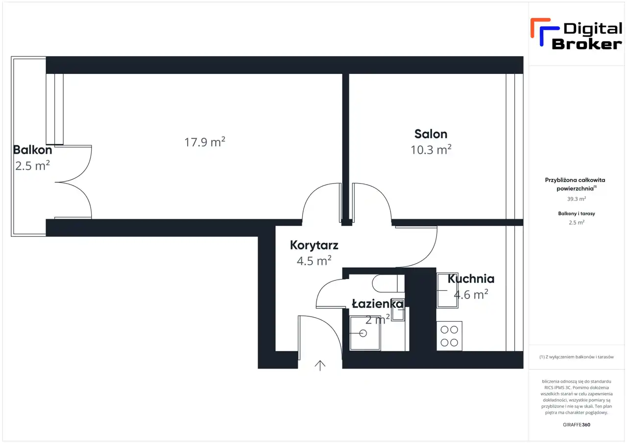 - Charakterystyka mieszkania 39.37 m2, 2 pokoje