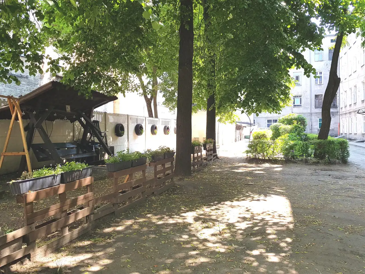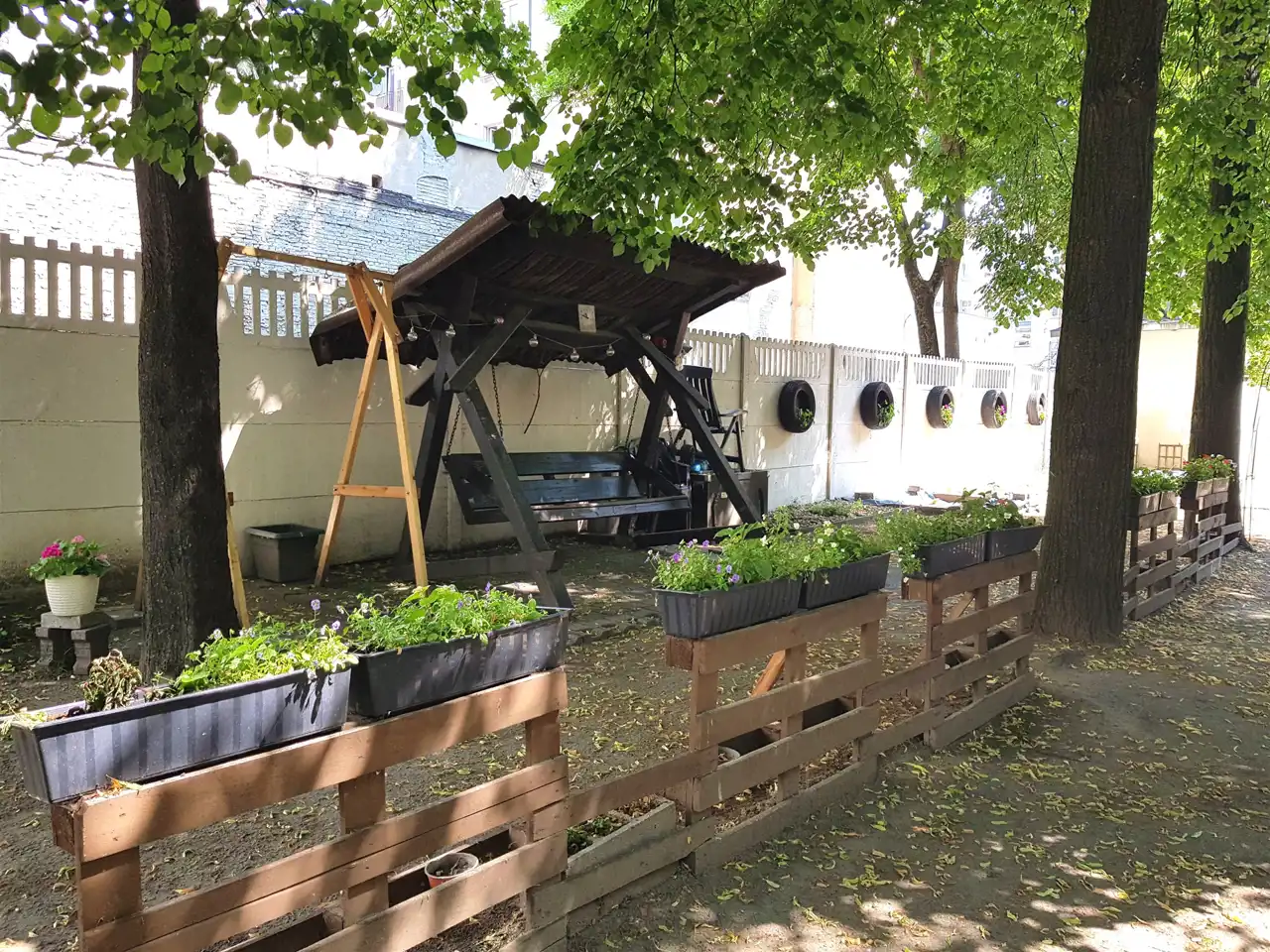 Teren posesji zadbany z miejscem do relaksu dla mieszkańców i parkingiem /brama na pilota/