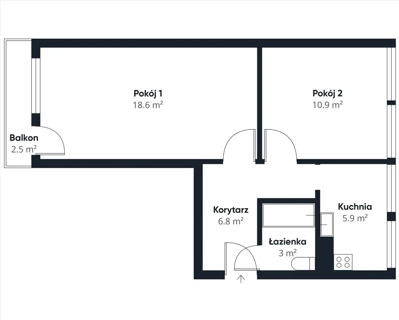 - Pokój 1 (ok. 18,5m2) z balkonem (ok. 2,5 m2)