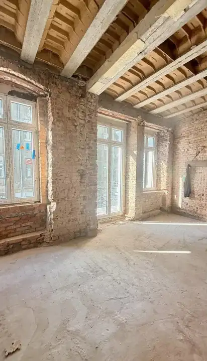 - Wymienione okna, nowe drzwi, betonowe lub lekkie stropy.