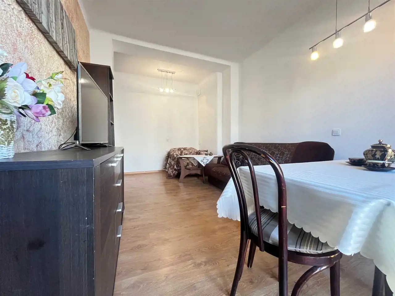 Przestronny salon pełni funkcję wypoczynkową oraz jadalnianą, gdzie można spędzać czas z rodziną lub znajomymi.