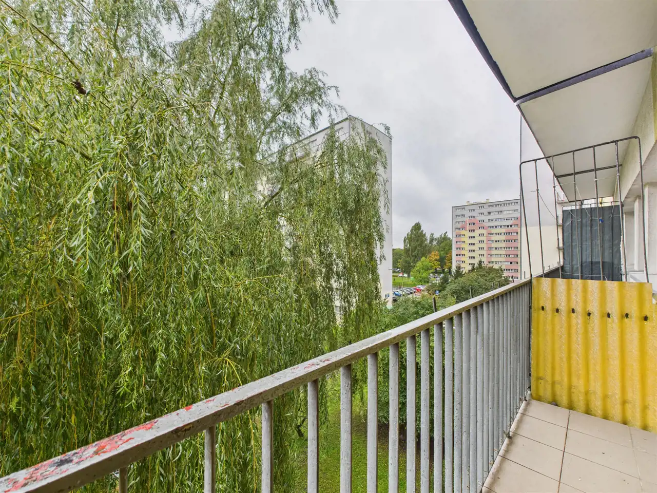 Dodatkowym atutem jest balkon, z którego rozpościera się przyjemny widok na zieleń osiedla.