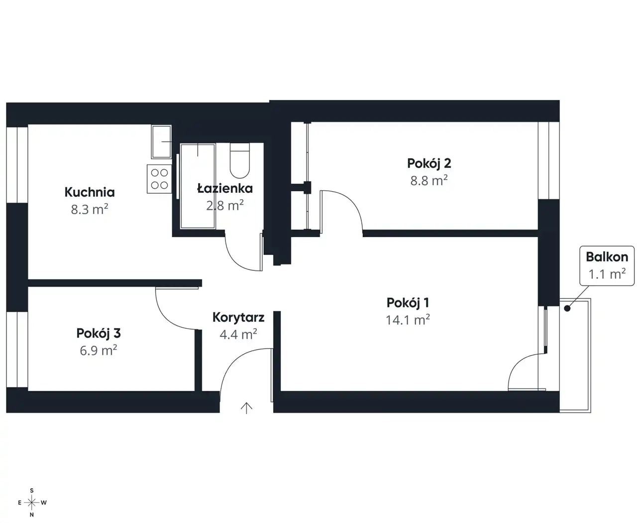 - Charakterystyka mieszkania 46.05 m2, 3 pokoje
