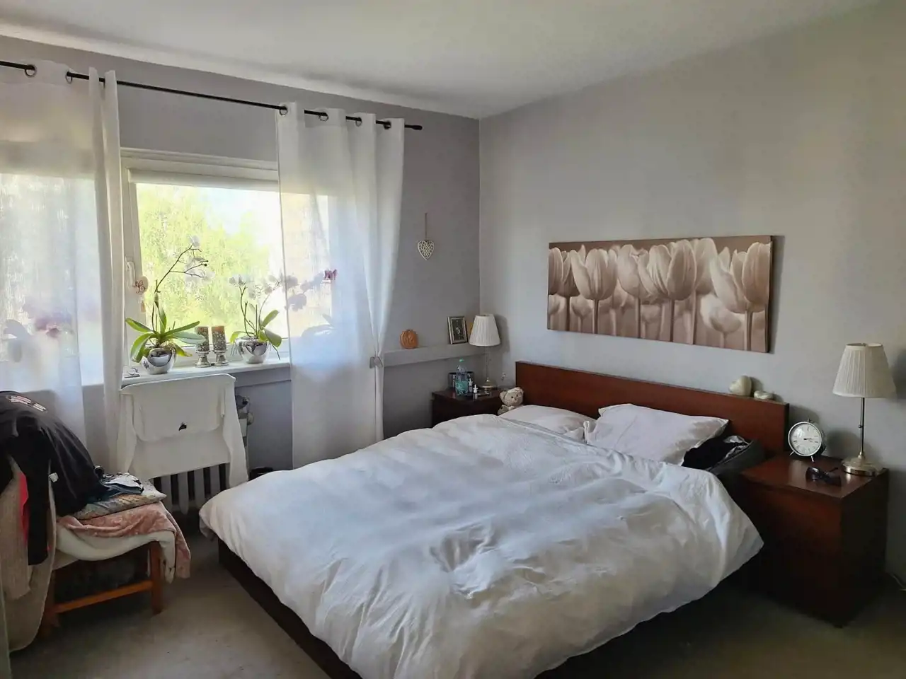Sypialnia jest ustawna i spokojna, idealna jako pokój do odpoczynku lub gabinet.