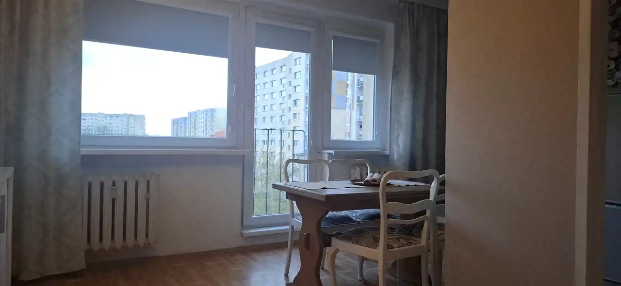 Mieszkanie o pow. ca 38,15 m kw., położone jest na V piętrze w wieżowcu z płyty, ocieplonej styropianem.