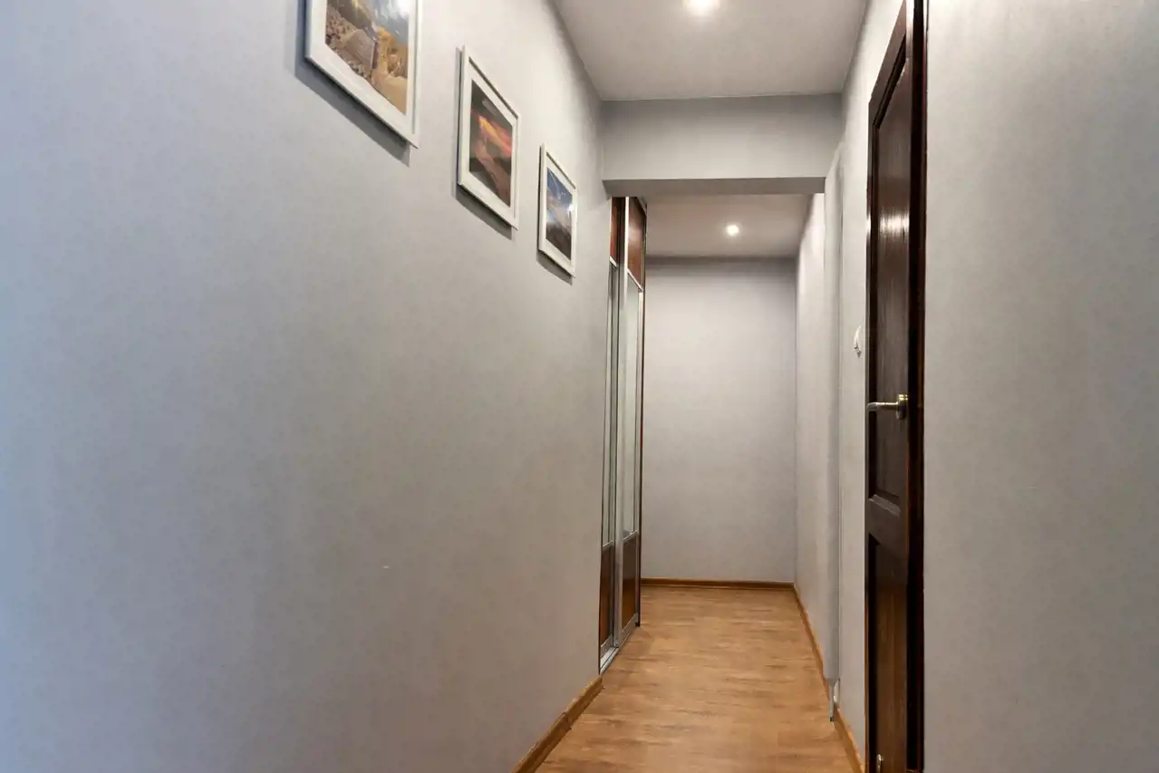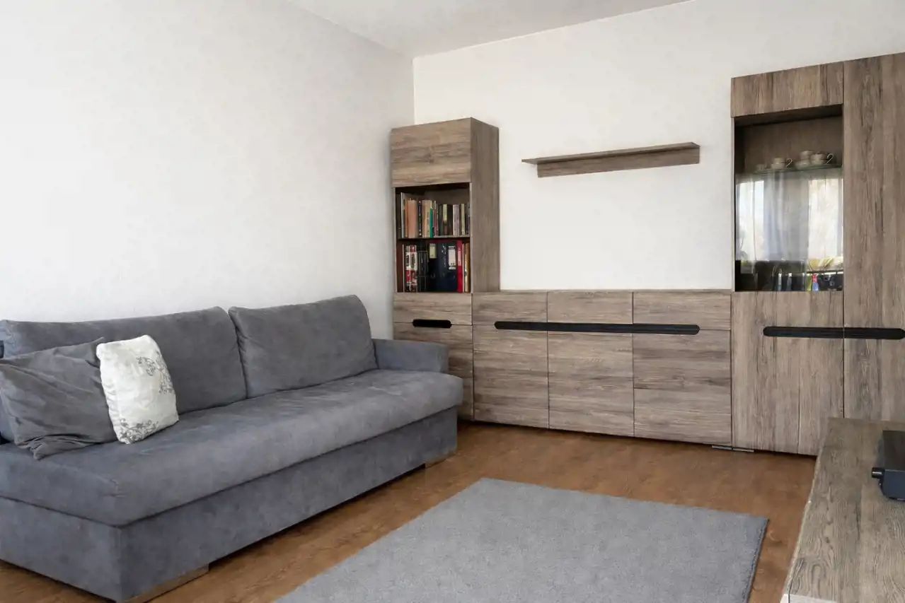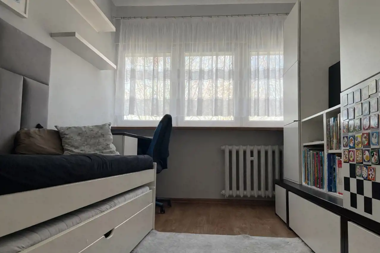 Mieszkanie składa się z salonu z balkonem, oddzielnej kuchni w zabudowie (lodówka, piekarnik, płyta gazowa), drugiego pokoju do własnej aranżacji, łazienki oraz przedpokoju z szafą typu Komandor.