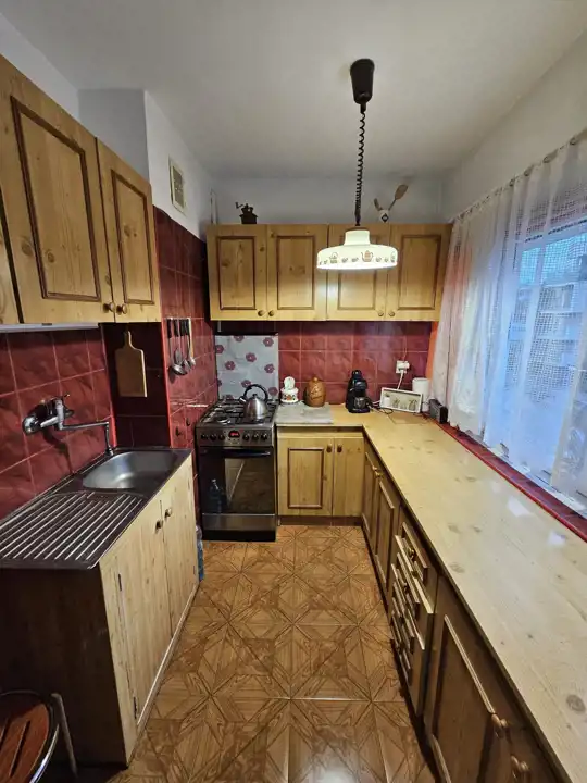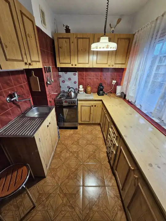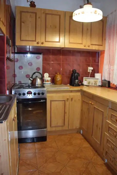 Zaś w kuchni podwójne okna czynią dobre doświetlenie wnętrza. Kuchnia jest sporej wielkości.